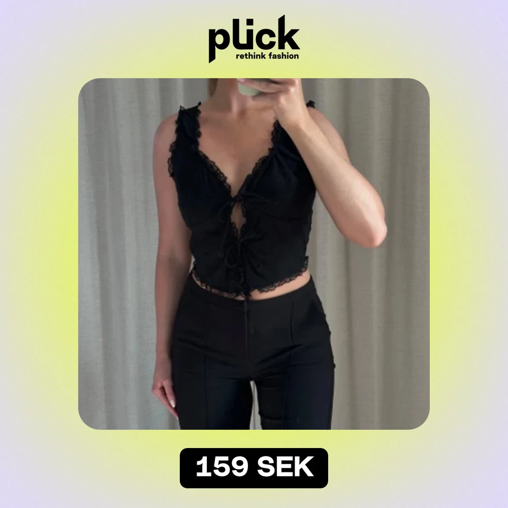 Linne med spetsdetaljer från Bik Bok i sommar, aldrig använt! Jättefint skick, snygg passform och knytning framtill 🖤 köpt för 399:-