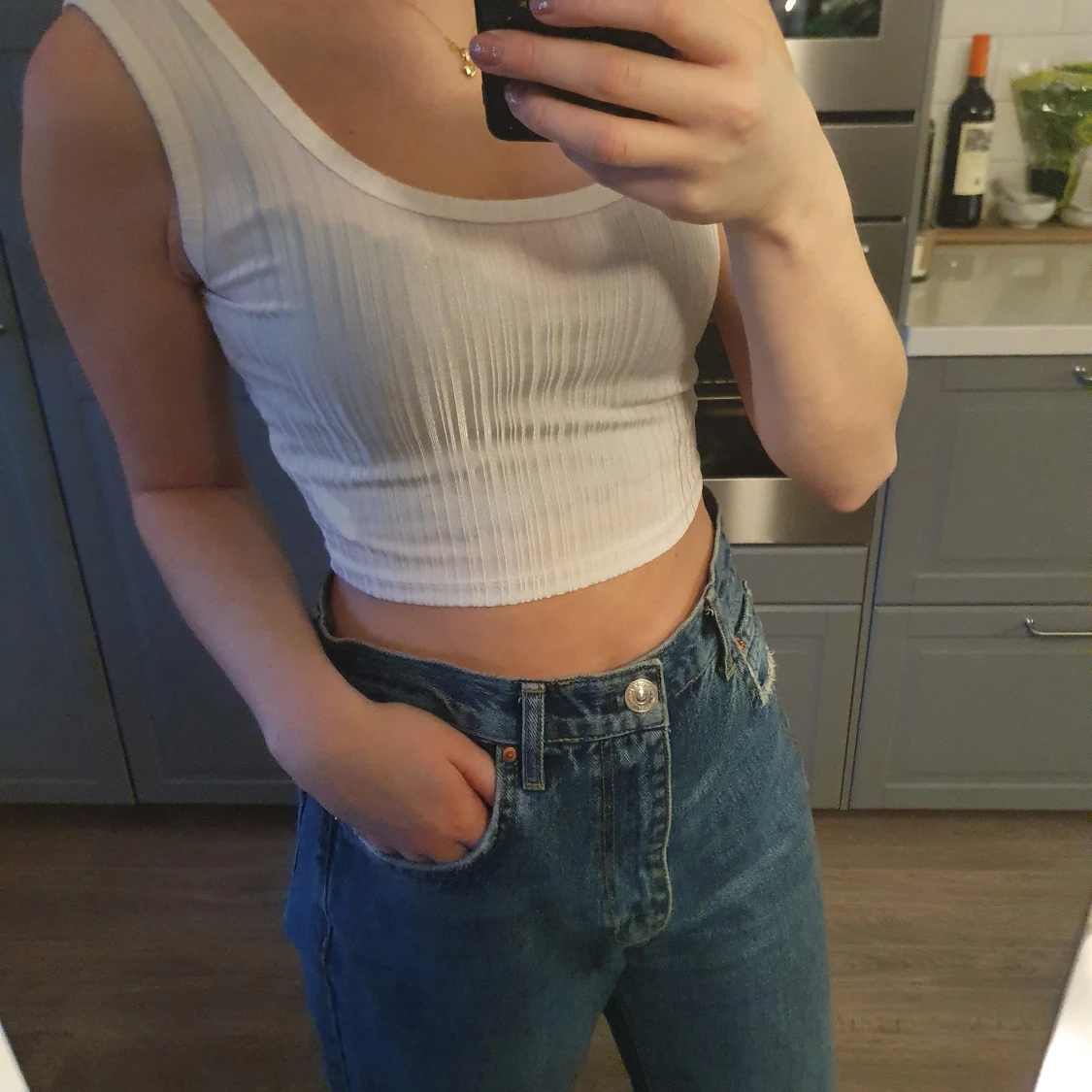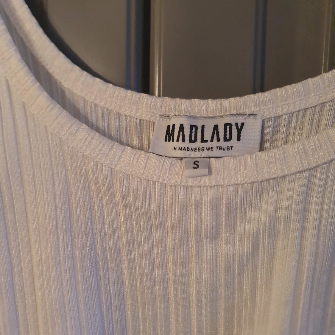 Vit topp från madlady. Aldrig använd då det är för litet för mig. Tyget är aningen "glatt" och lite "glansigt"