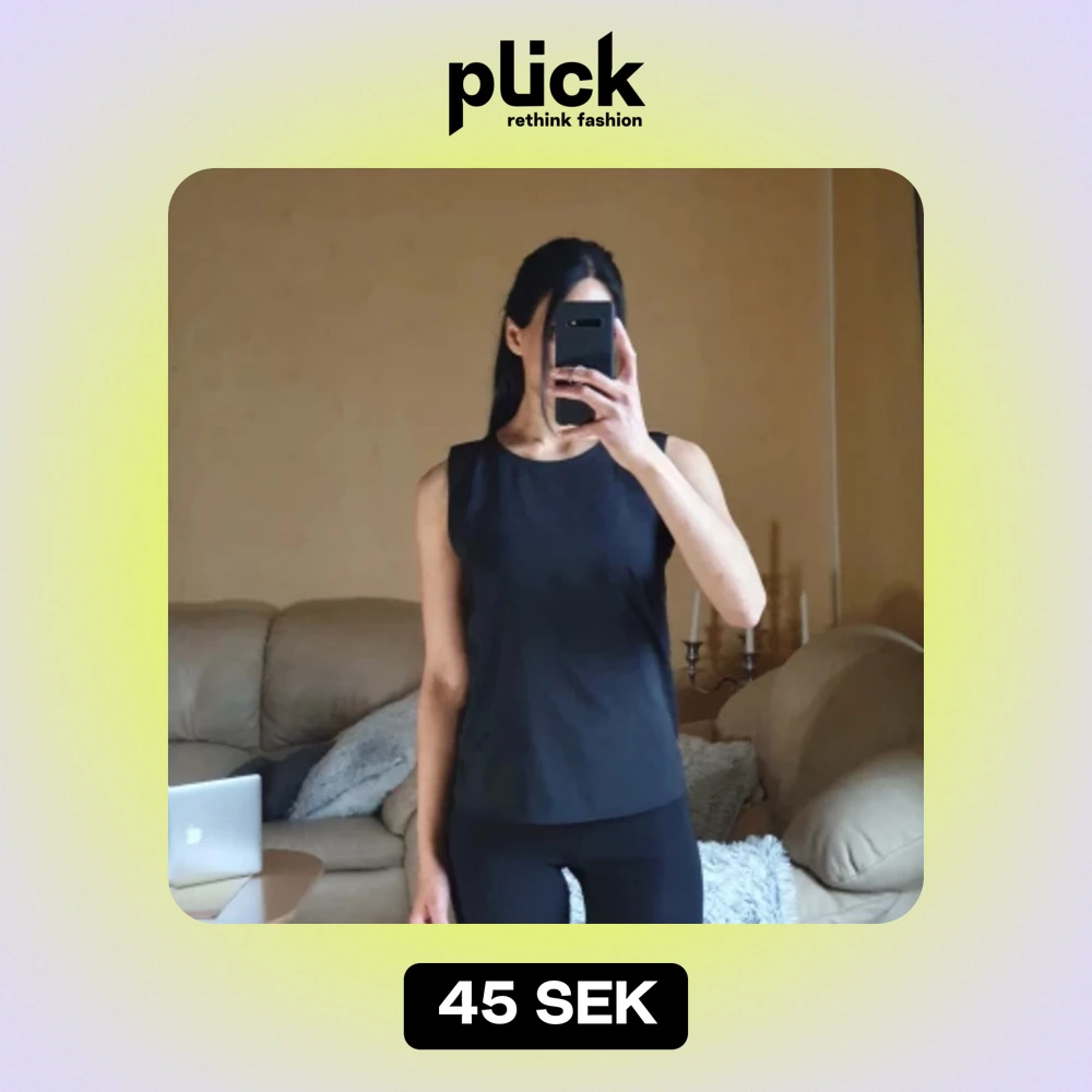 En enkelt linne i kostym stil, har en imiterad ficka på bröstet och är några cm längre bak o perfekt skick! 🖤🖤 💯 Polyester 💯 •Jag är 173cm (xs) •Alltid nytvättat innan utskick
