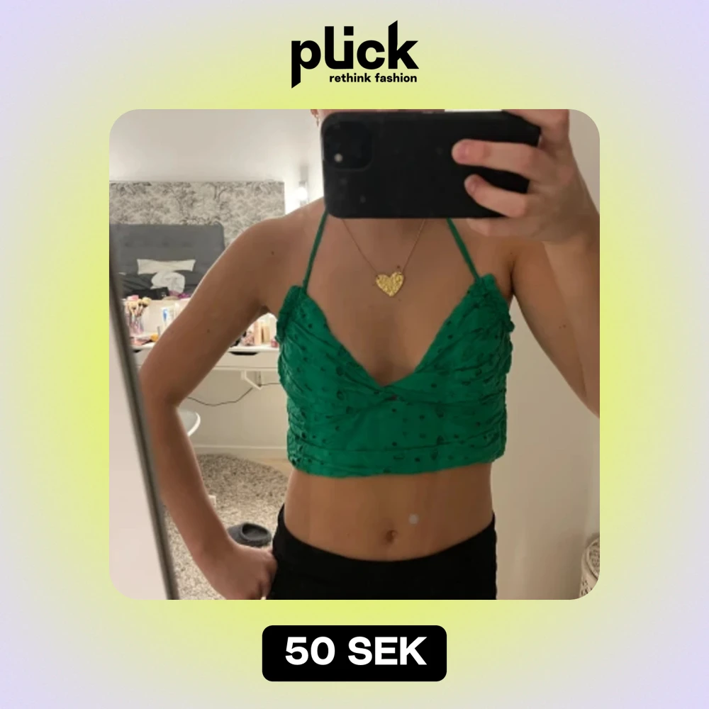 Grönt snyggt sommarlinne med mönster och snygg knytning i ryggen. Från Zara och i storlek S.