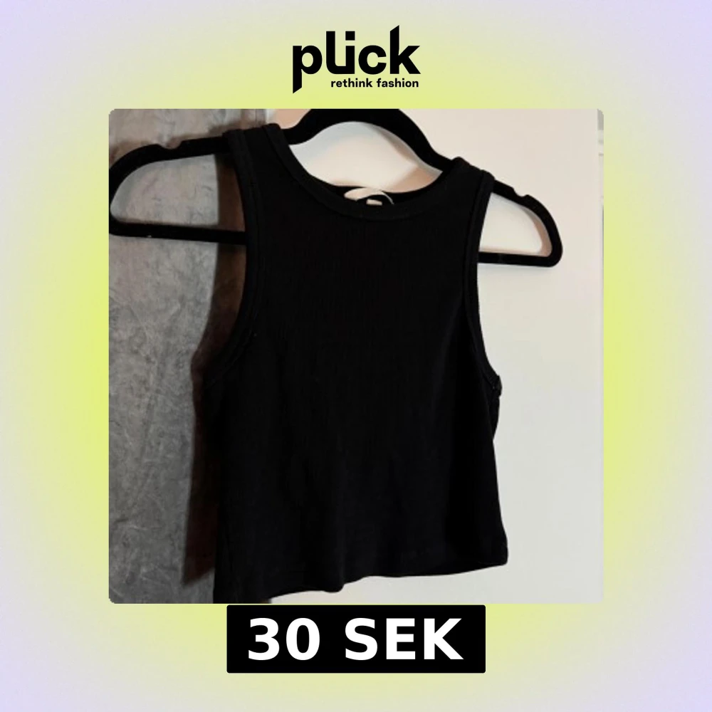 !LÄS BIO INNAN KÖP! Säljer detta linne i ribbat material, ärmlös och har en croppad passform. Passar perfekt till sommaren eller som en fest topp! För fler bilder är det bara att skriva!