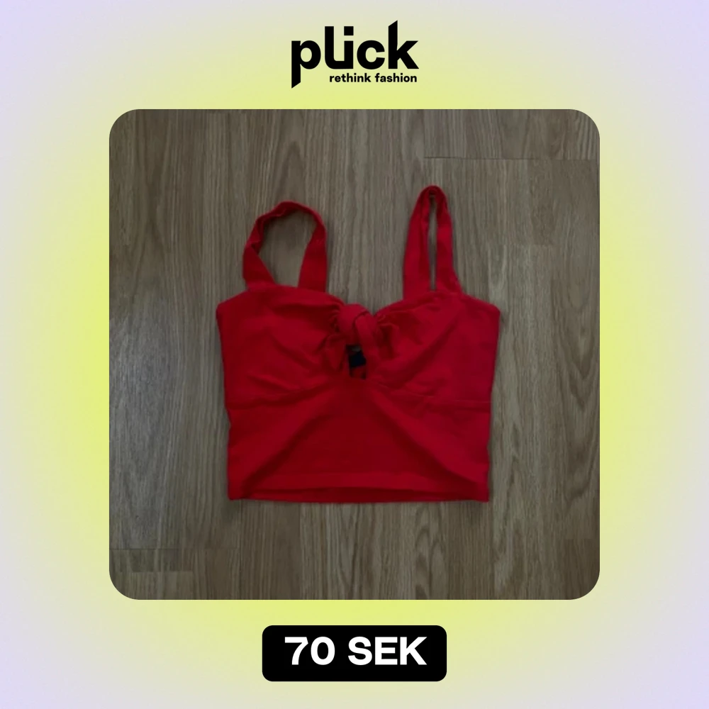 Linne med rosett från Gina Tricot, slutar vid naveln. Helt ny har endast tagit bort prislappen och testat den. Mer julröd i färgen.
