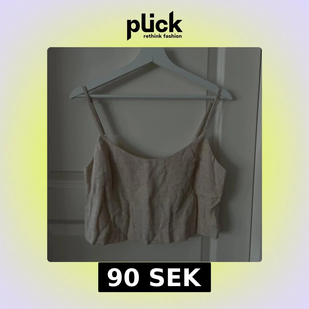 Säljer en stilren beige linnetopp med smala axelband. Toppen är croppad och har en enkel, rak passform. Perfekt för varma dagar och enkel att matcha med olika outfits. Kollektion Lisa&Lena för NA-KD