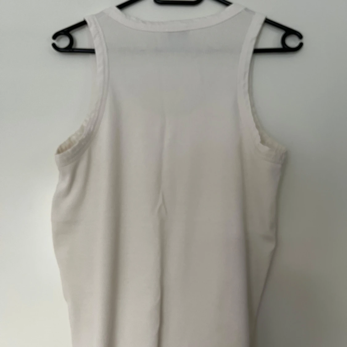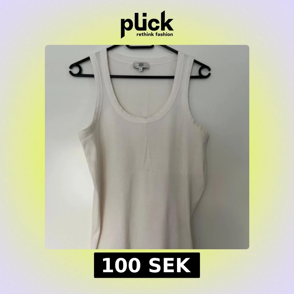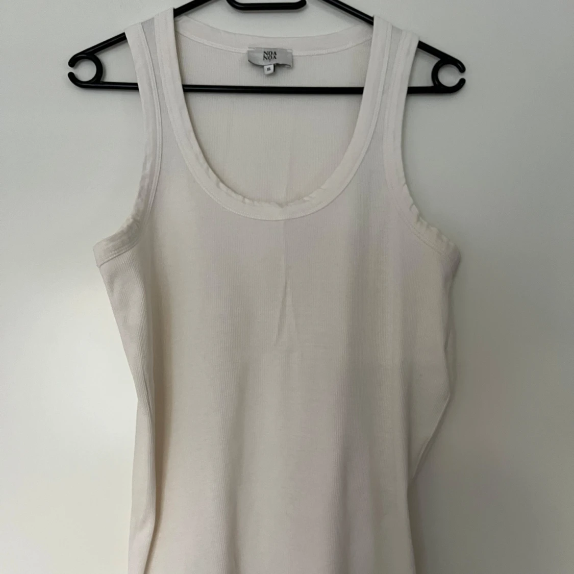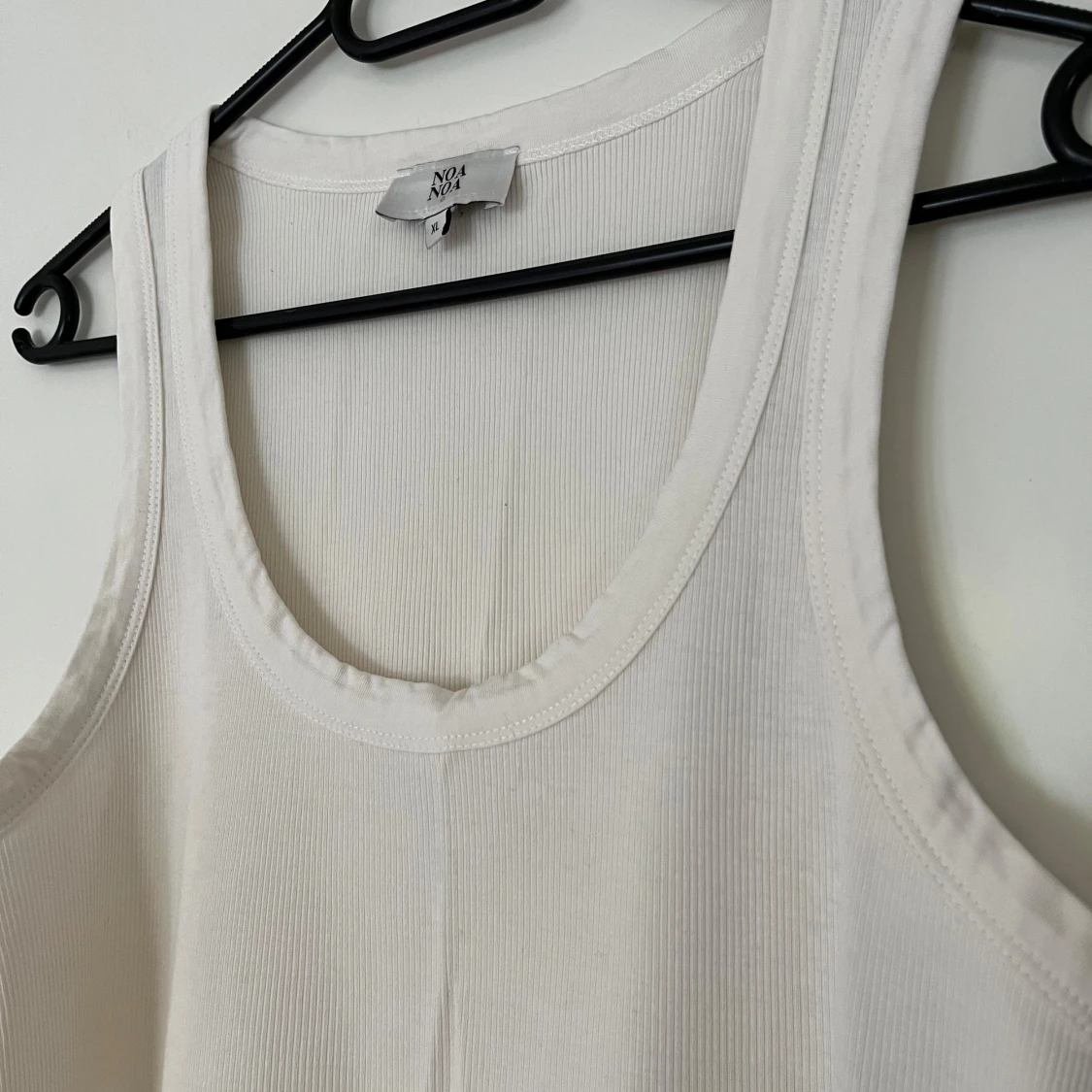 Vit ribbad tanktopp med rund halsringning från Noa Noa. Enkel och stilren design. Storlek XL. Nyskick. 100% bomull. Mått: Längd ca 59 cm Byst ca 45 cm Midja ca 48 cm