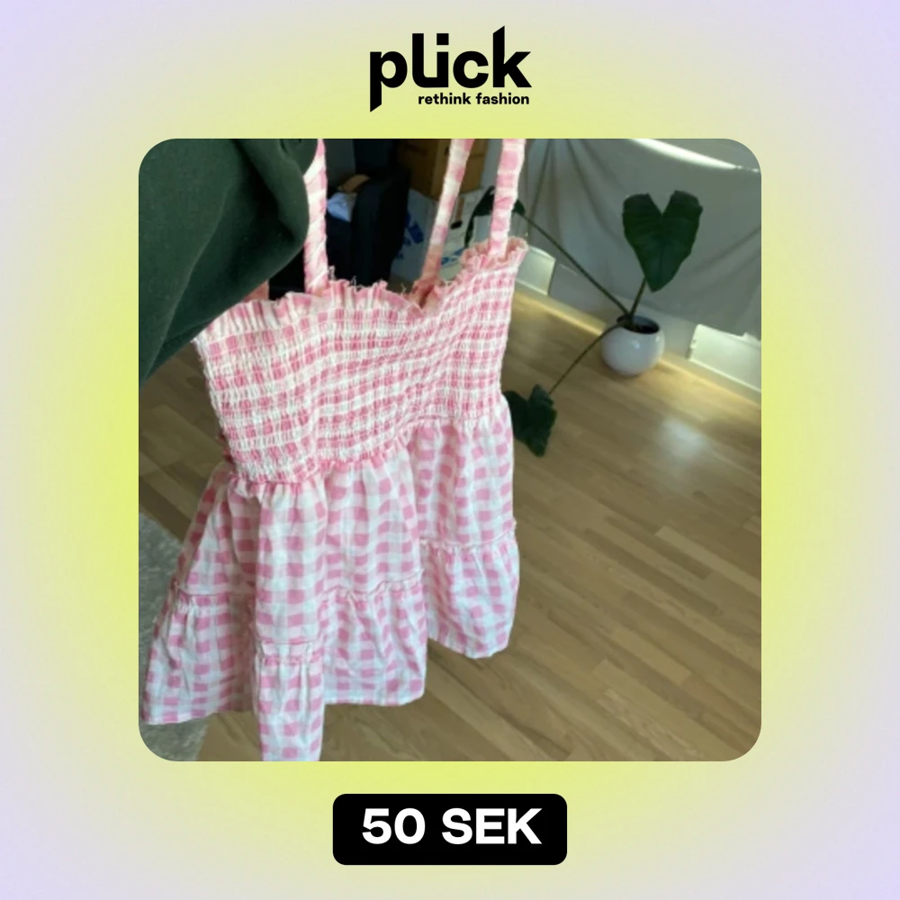 Ett rosa och vitt-rutigt linne, helt oanvänd, linnet sitter tajtare runt bröstkorgen och lösare under💕