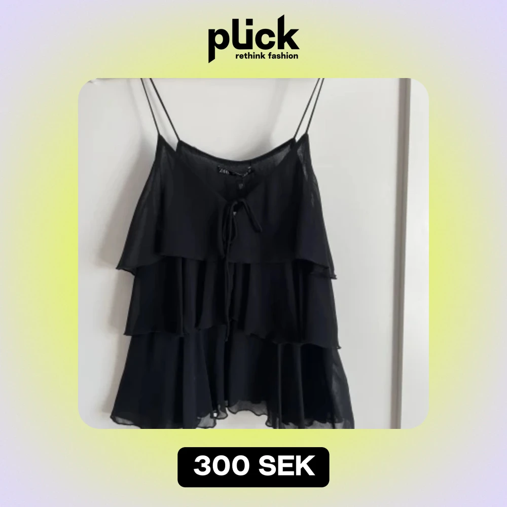 Säljer nu mitt svarta linne med volanger från Zara i storlek xs, nyskick då lappen fortfarande finns kvar. Skriv om ni har några frågor!