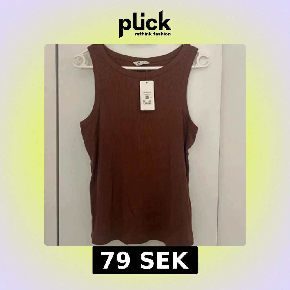 Säljer en ribbad brun linnetopp från C i storlek L. Toppen är ärmlös med rund halsringning och har en snygg, enkel design som är lätt att matcha. Materialet är mjukt och stretchigt, perfekt för dig som gillar bekväma och stilrena plagg.