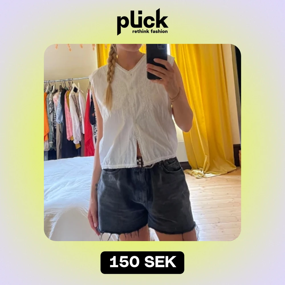 Broderat vintage bomullslinne med knappar framtill❣️ Storlek M