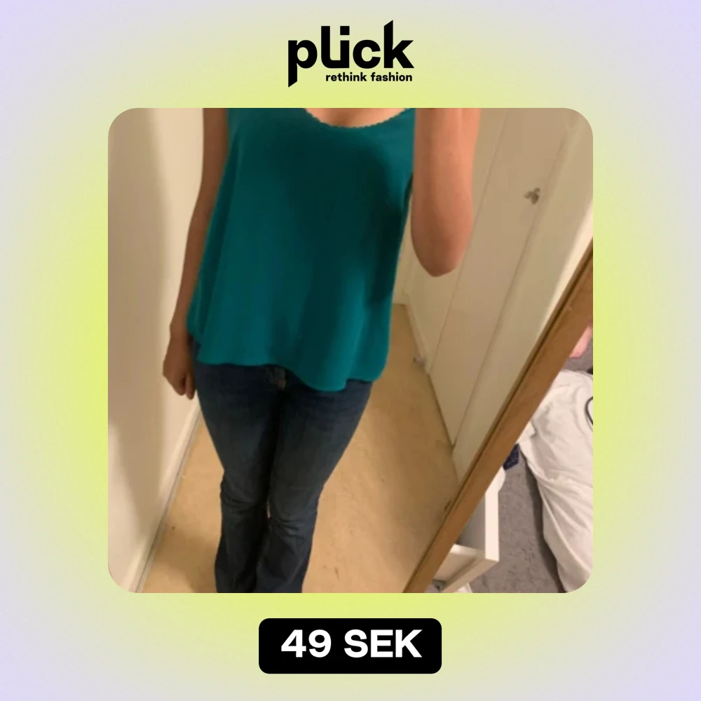 Den är GRÖN men ser lite mer blå ut i kameran❤️ använd en gång!