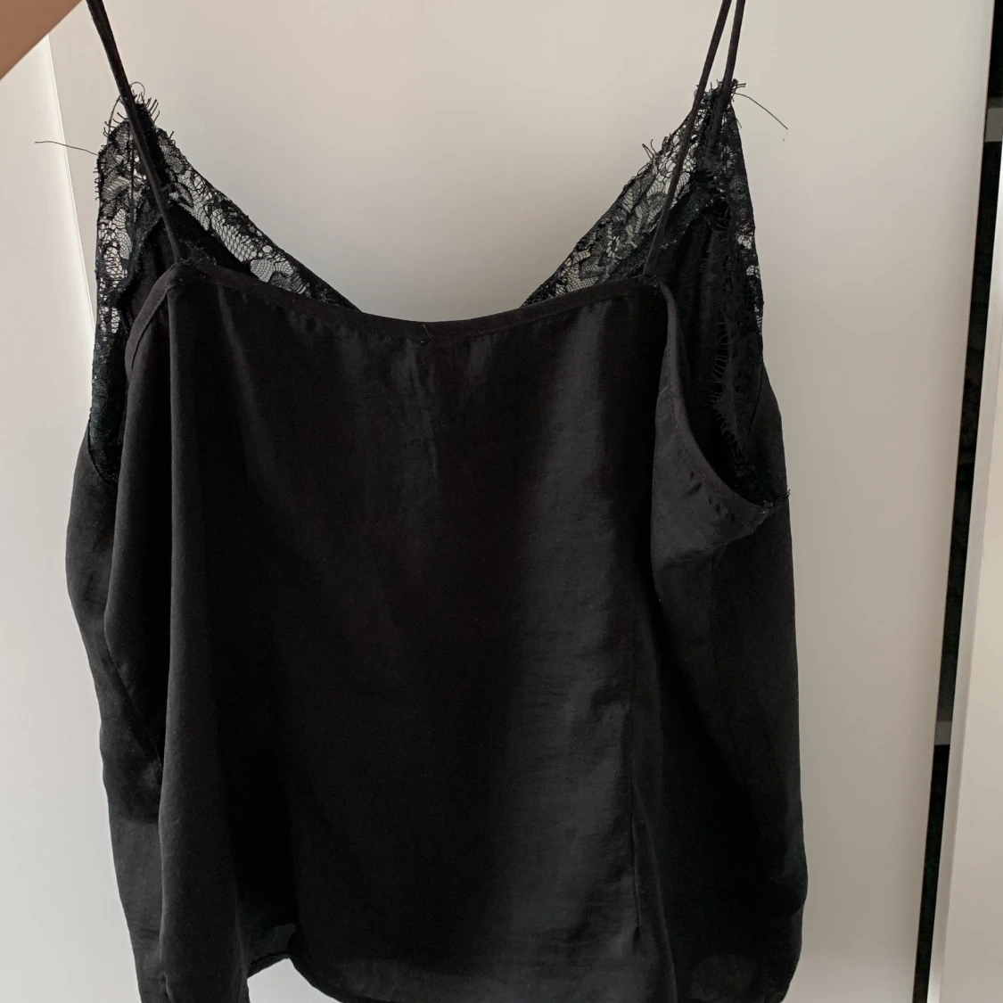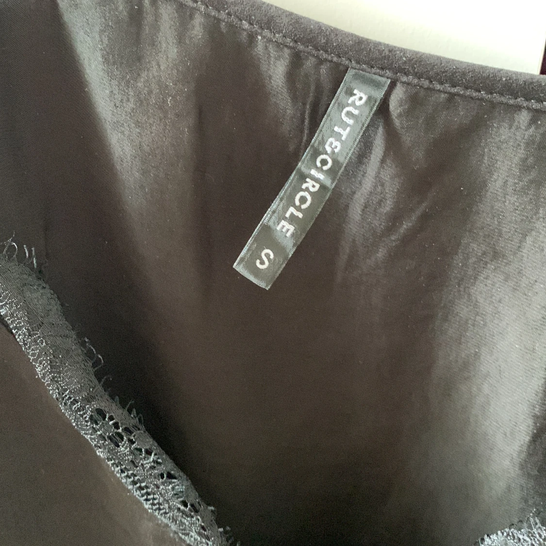 Svart spetslinne i satin liknande material, använt sparsamt, passar storlek s