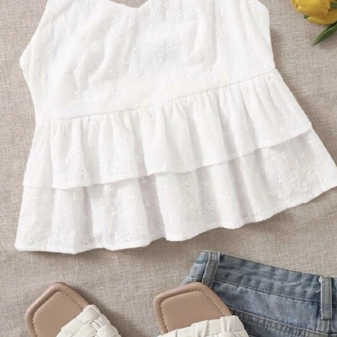 Linne med volanger och blommor på, säljer för att det är för litet på mig