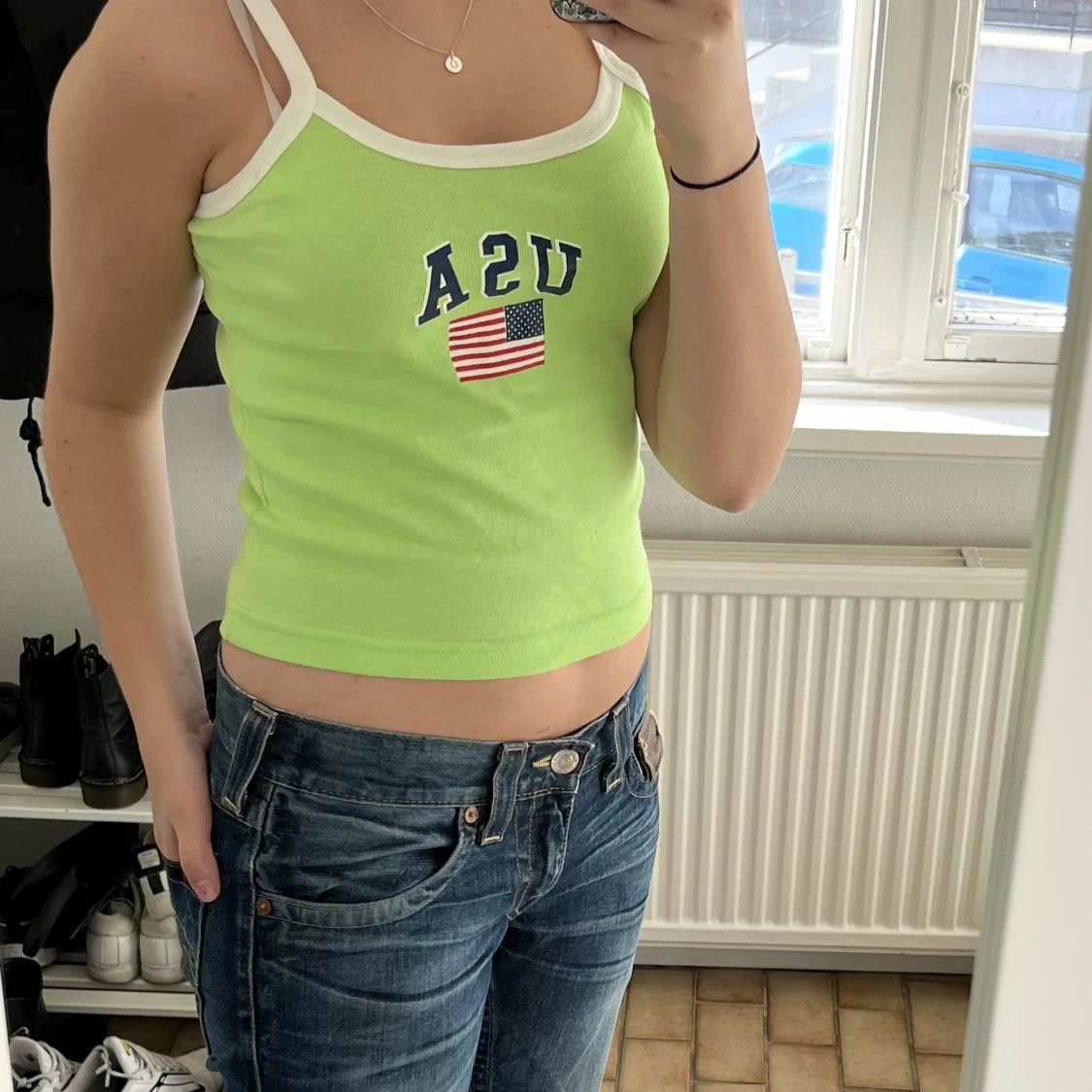Grönt linne med tryck, köpt second hand. Säljer på grund av den inte kommer till användning.