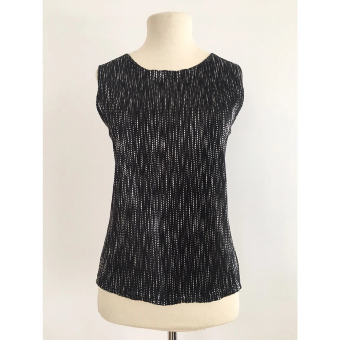 Plisserat linne i svart och silver. Märke: Kappahl Storlek: 38/40 Skick: Mycket gott. Använd endast en gång. Pris: 50 kronor Frakt: Betalas av köparen.
