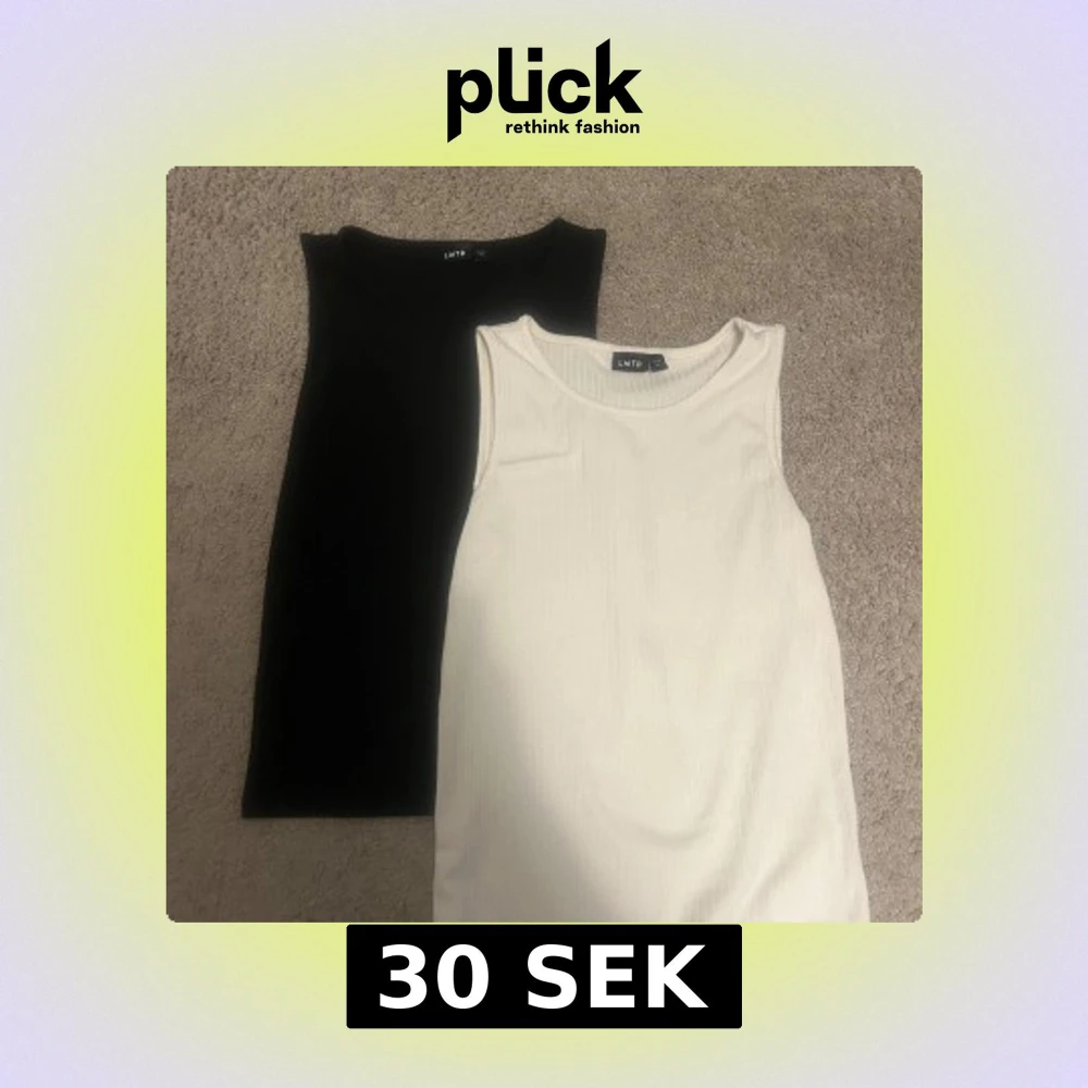 Två linnen LMTD, en i svart och en i vit. Båda är ärmlösa med rund hals och har en ribbad struktur. Perfekt för dig som gillar enkel och clean stil. En för 20, två för 30