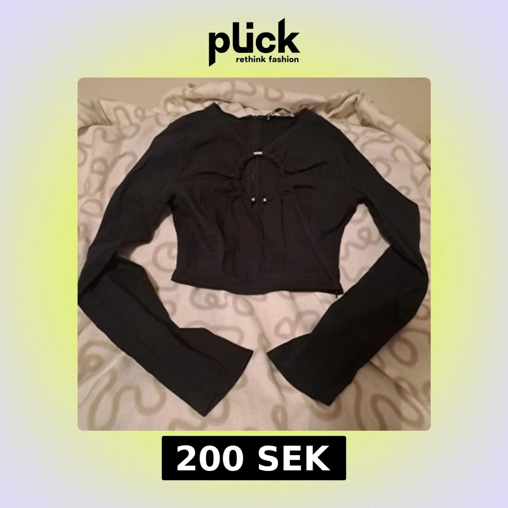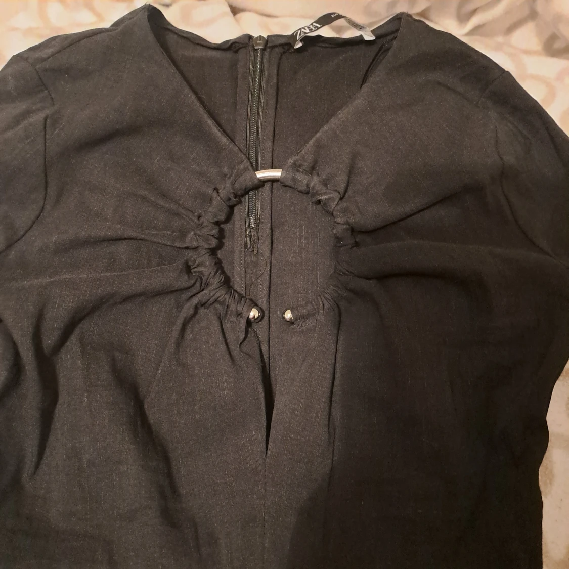 Svart croppad topp från Zara med lång ärm och cool cut-out detalj framtill med metallring och snörning. Dragkedja i ryggen och vid sidan. 😊🩷