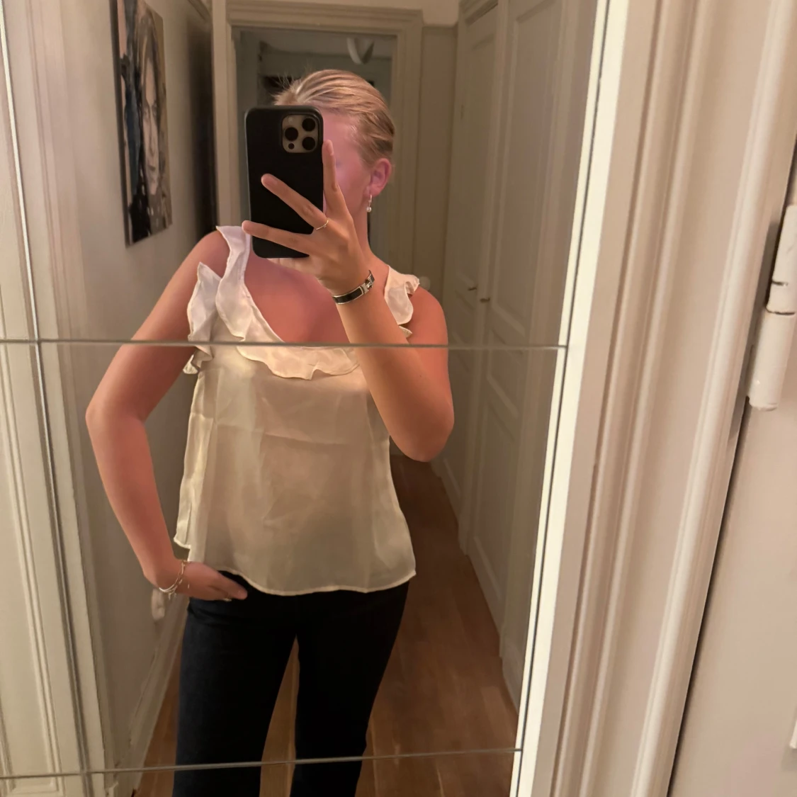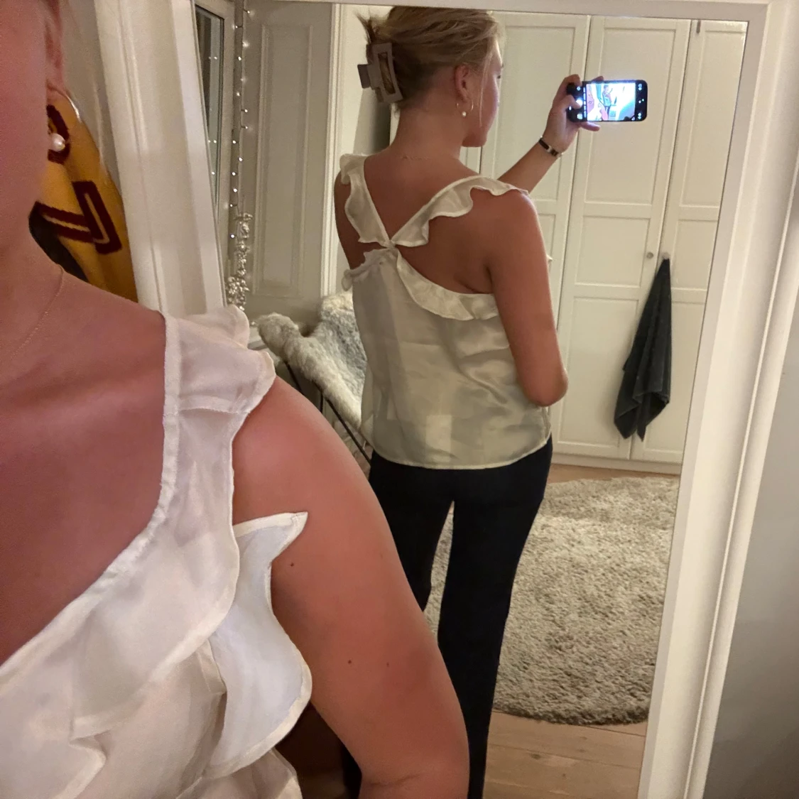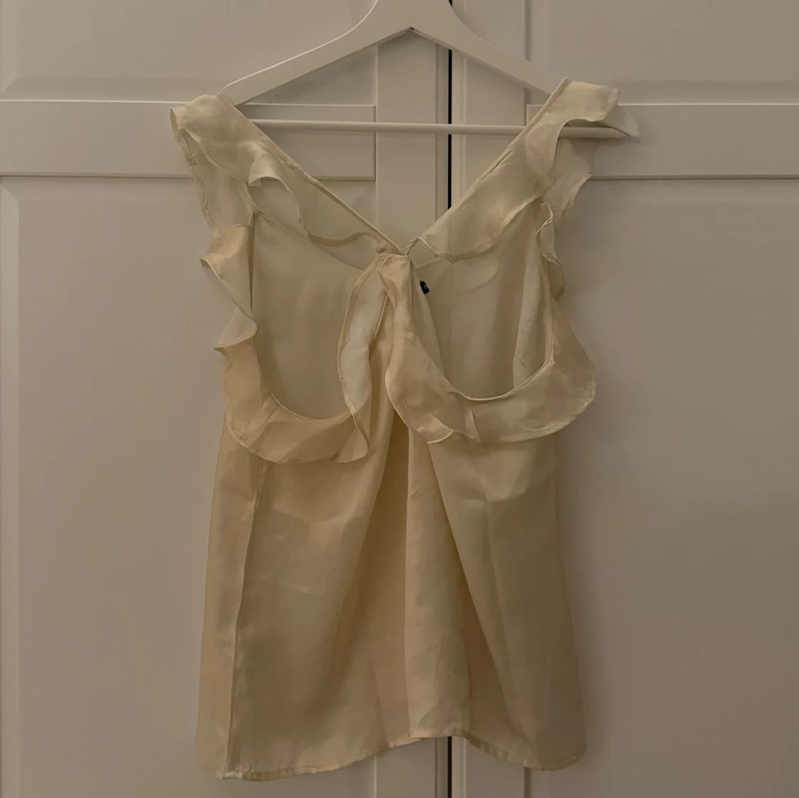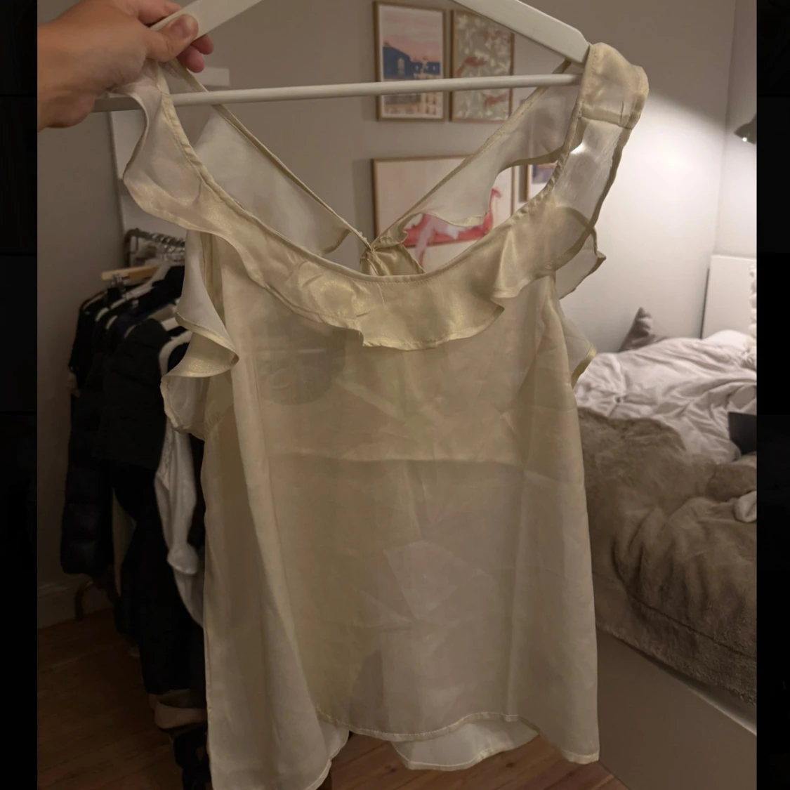Supersöt unik ljusbeige skimrig linnetopp med volangdetaljerđSĂ„ snygg till middag och fest! Ălskar ryggen, sĂ„ himla vacker!! I vĂ€ldigt bra skick. GĂ„r inte att fĂ„ tag i lĂ€ngređ€Skriv för fler bilder!