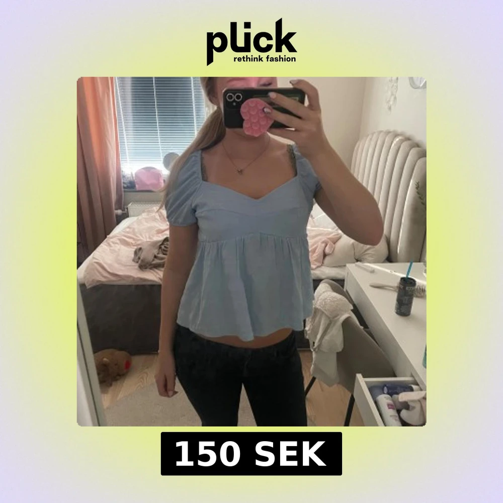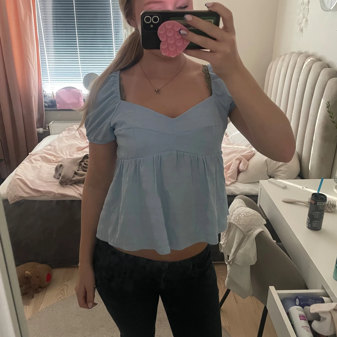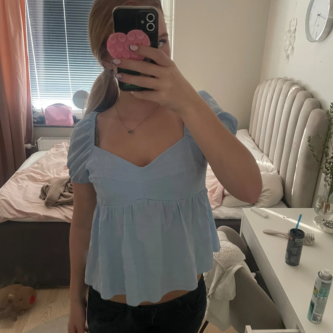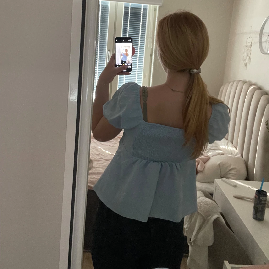 Supersöt ljusblå blus som är i strl M men passar även S. Köpt på vinted och använt 2-3 gånger💗