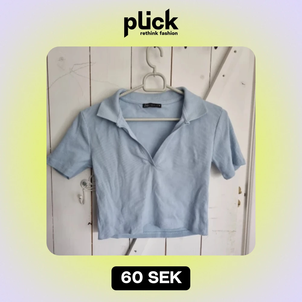Piké krage med v-neck. Ribbad, stretchigt tyg i 95% bomull 5% elastan. Aldrig använd, tvättad nu för att sälja.