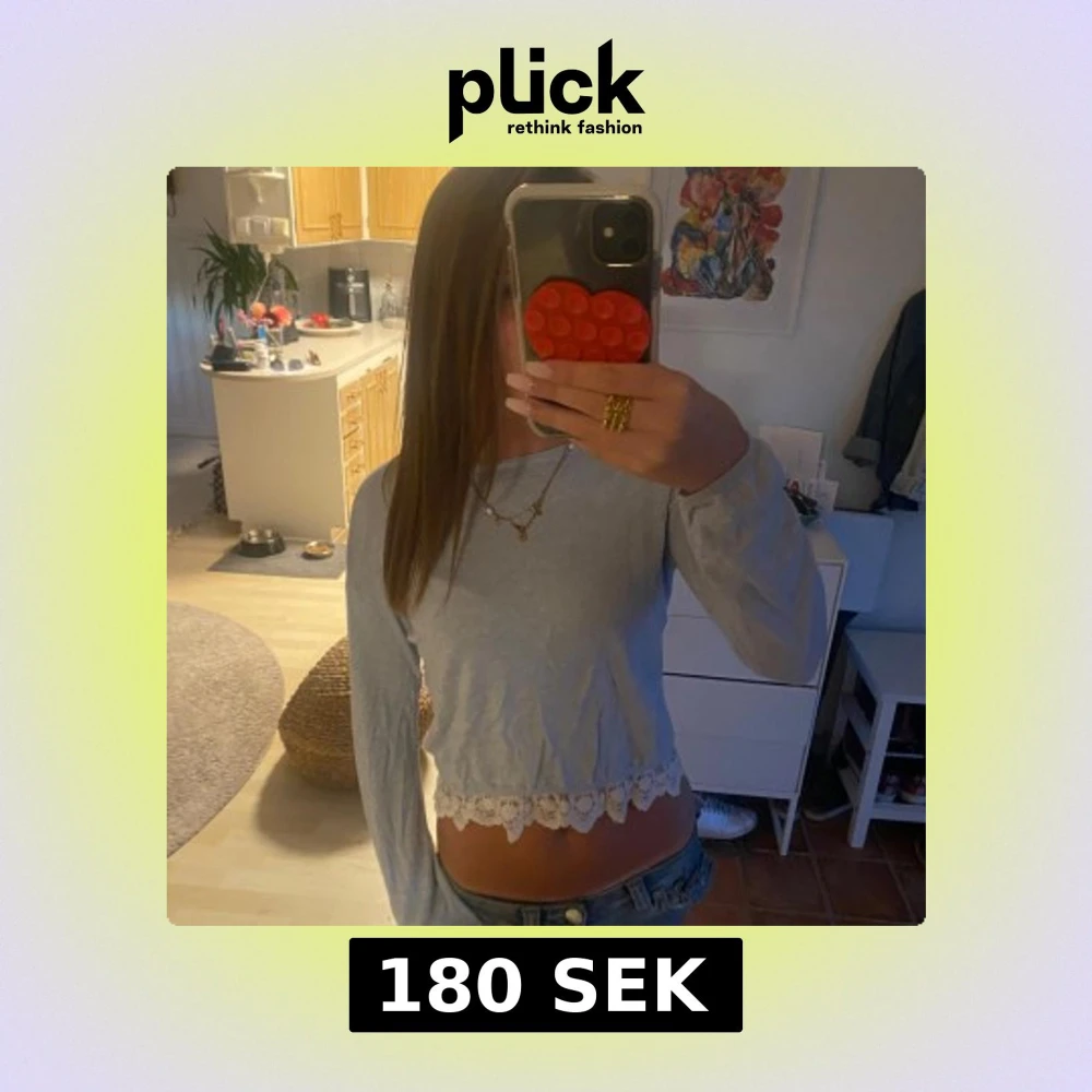 Supersöt ljusblå croppad tröja från H&M med lång ärm och spetsdetalj längs nederkanten. Tröjan har en öppen rygg med snygg cutout och är perfekt för dig som gillar en chill men ändå feminin stil. Passar till jeans eller kjol för en fräsch look.