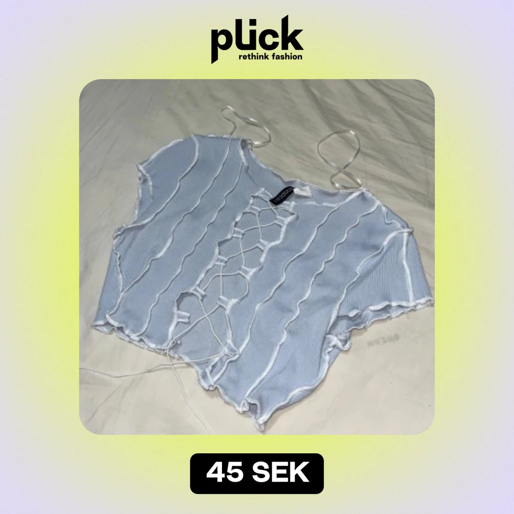 Söt topp från H&M!🩵 Går att spänna/släppa snörena hur lite och mycket man vill, varav storleken därför är lite flexibel! Strl S men går att göra mindre/större.🩵 Går att snöra hela vägen men orkade inte lol🎀 Pris går att diskutera