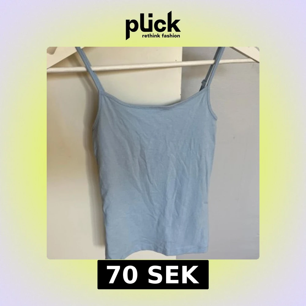 Säljer ett ljusblått linne med smala axelband. Perfekt för varma dagar. Enkel och stilren design som är lätt att matcha med olika outfits. Det är bekvämt och passar perfekt som man vill ha det, men har tyvärr inte kommit till användning för mig. Säljer även ett likadant i gul i xs!