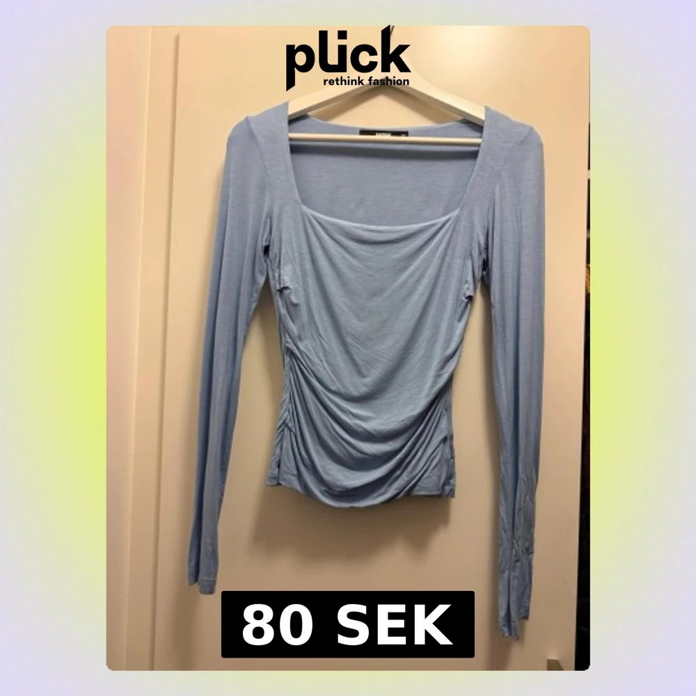 Supersnygg ljusblå långärmad topp från BikBok med fyrkantig ringning och draperad front. Tunn och mjuk i materialet, perfekt för lager-på-lager eller som den är. Sitter figurnära och har en stilren look som passar till jeans eller kjol.