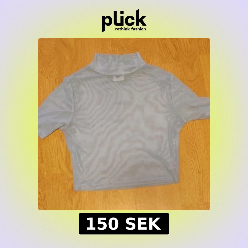 Snygg ljusblå mesh polotopp med korta ärmar. Perfekt för lager-på-lager-stil eller som statement-plagg. Toppen är inte mönstrad som på andra bilden det är ljuset som spökar utan enkel transparent topp som är tight i passformen.