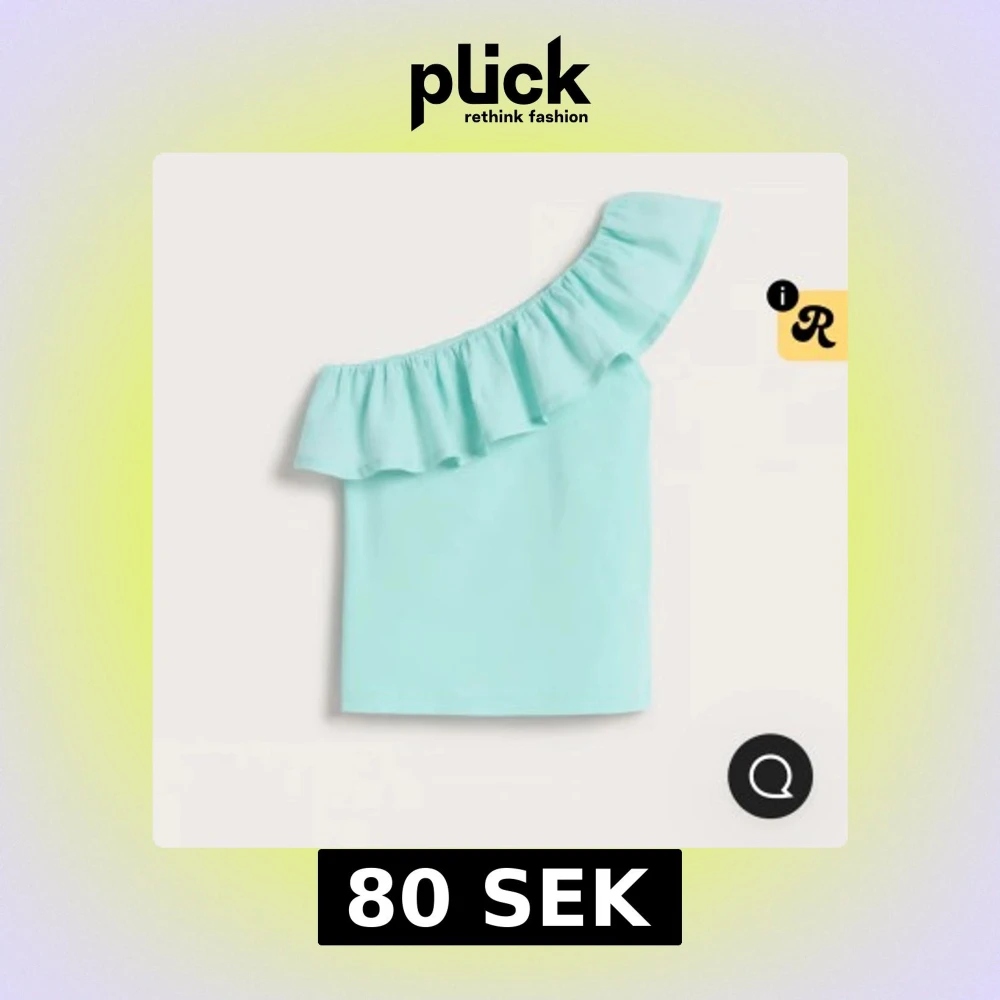 Snygg ljusblå offshoulder topp från Kappahl i mjuk bomull. Toppen har en volang längs den asymmetriska halsringningen och är ärmlös på ena sidan. Bara använd 2ggr och inga defekter🩷 läs gärna bio❤️