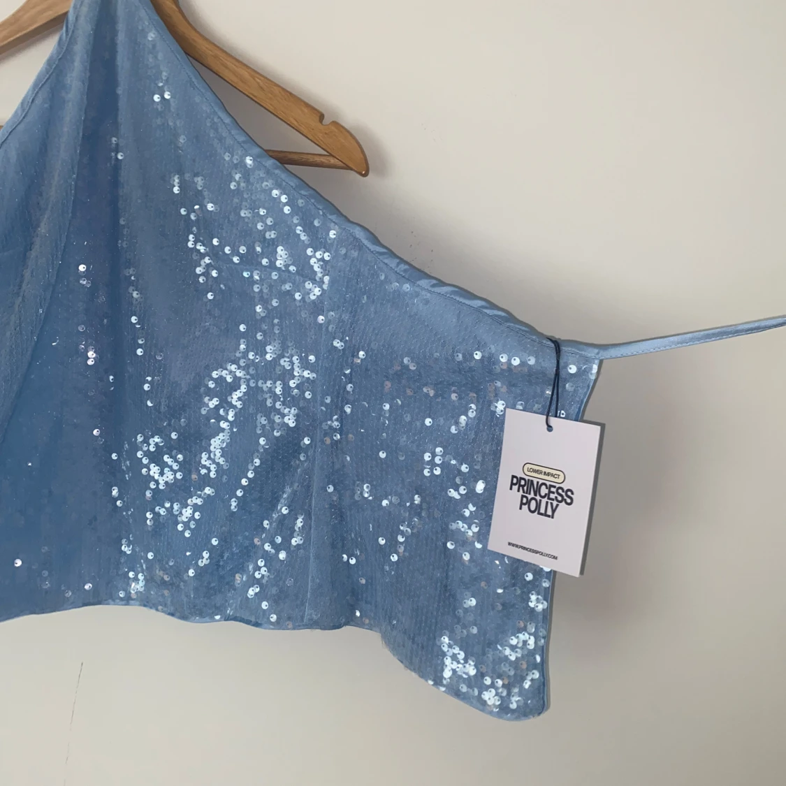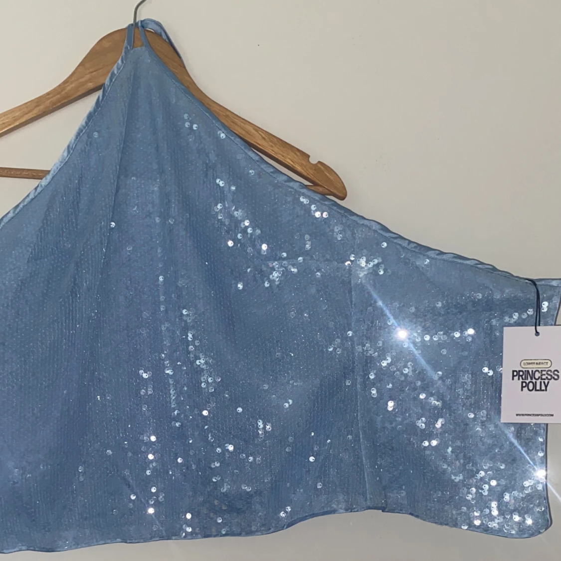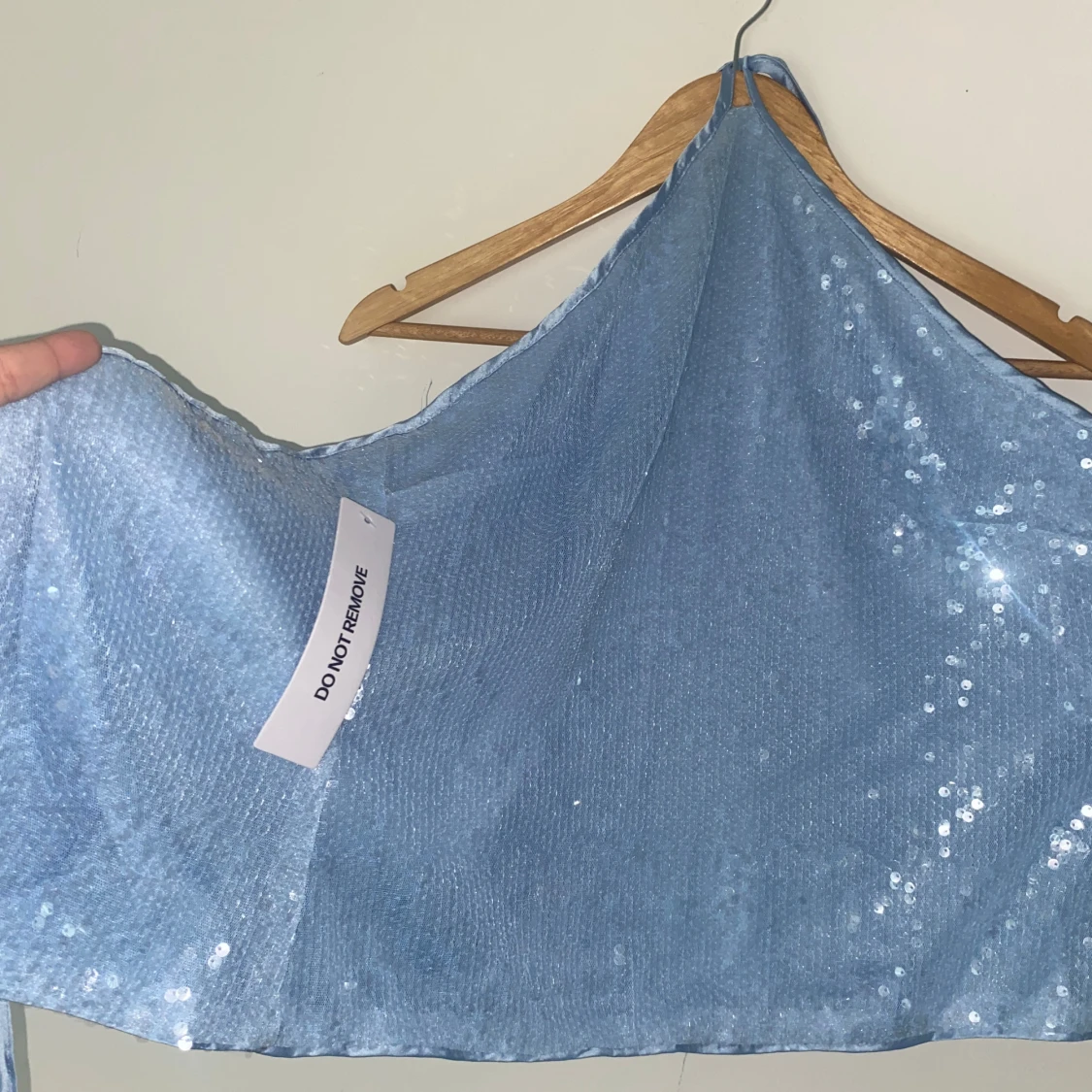 Halterneck-modell med knyt i nacken och öppen rygg. Croppad passform och lätt skimrande tyg som verkligen poppar. Helt ny och oanvänd med prislapparna kvar på. Säljer denna fastän att jag tyckte att den var jätte snygg, tyvärr passade den inte min kroppsform. Ordinarie pris var 59$, vilket är ungefär 574,90kr. OBS! Tänk på att jag har betalat tull och skatt enligt USA:s villkor, men utgår enbart från självaste priset. Därför kan jag ej sänka priset mer.