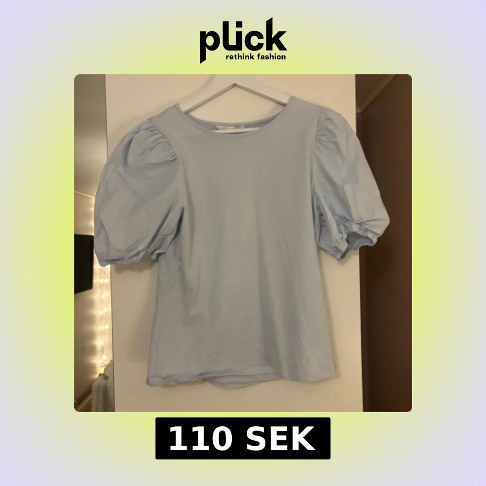 Supersöt ljusblå topp från H&M med puffiga korta ärmar och rund halsringning. Tillverkad i mjuk bomull, perfekt för en chill och trendig look. Enkel design som ändå sticker ut tack vare de voluminösa ärmarna.