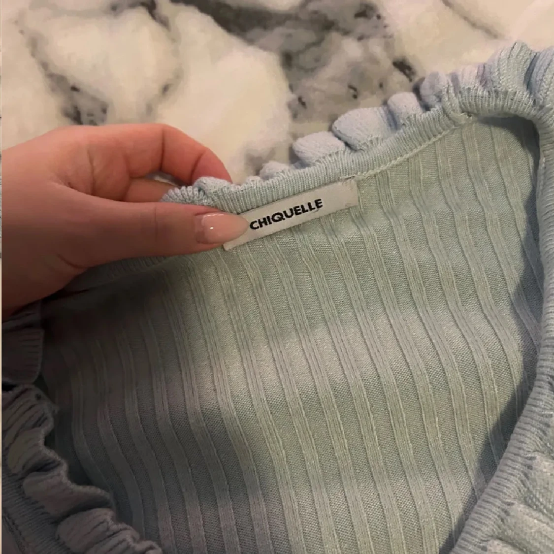 Ljusblå ribbad blus från Chiquelle