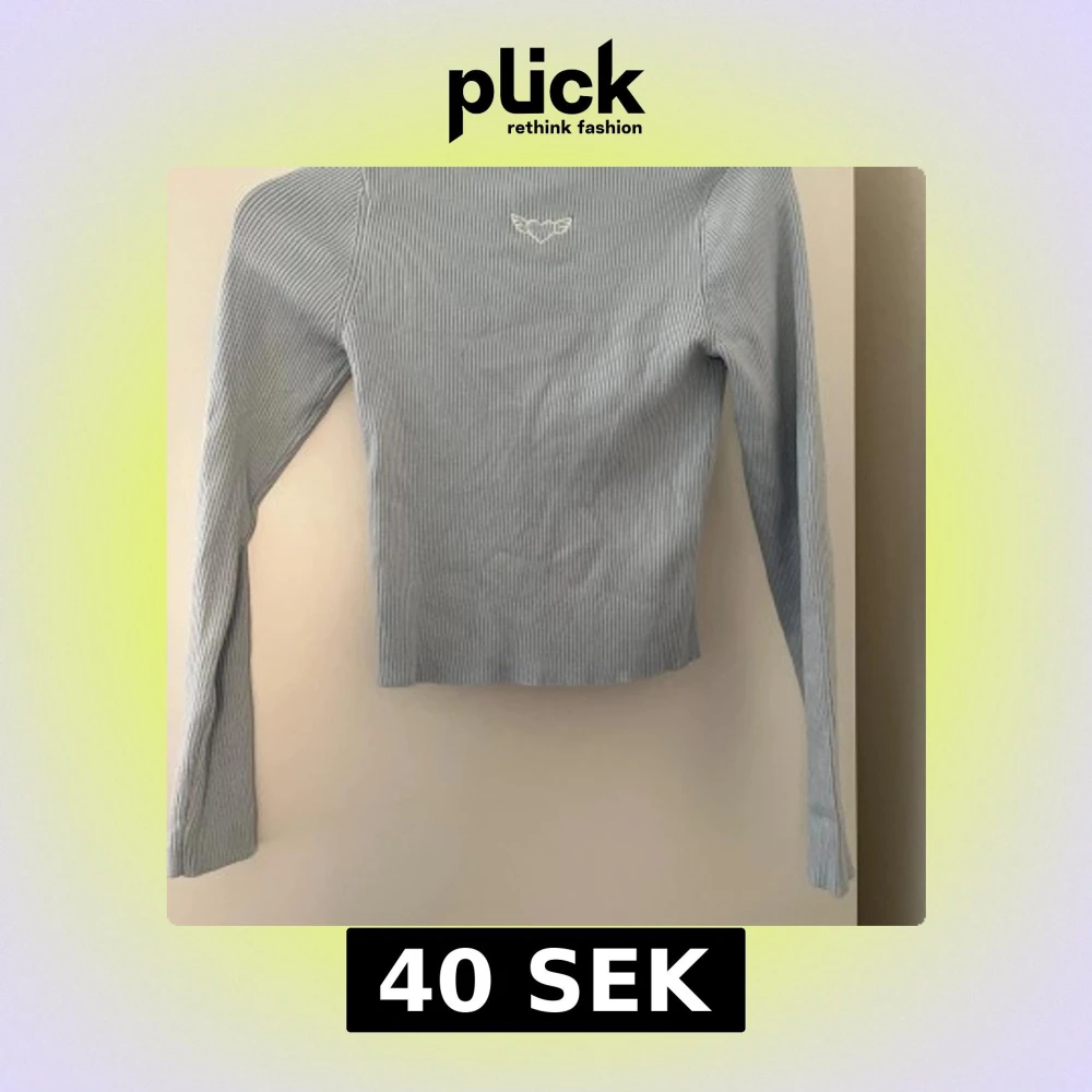 Supersnygg ljusblå ribbad långärmad topp från Chiquelle. Toppen har en tight passform och ett litet broderat hjärta med vingar framtill. Perfekt att styla med jeans eller kjol för en fräsch look.