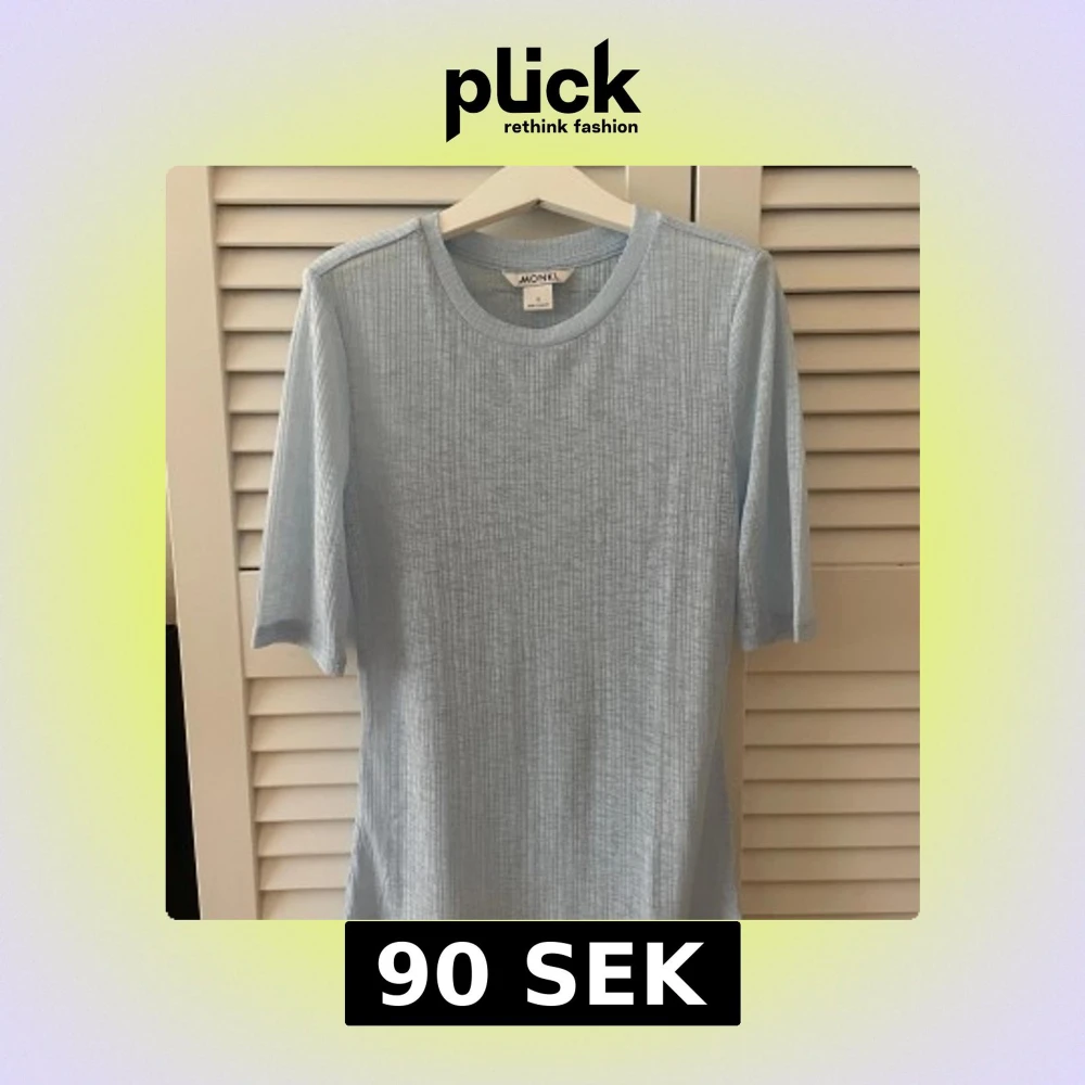 Supersöt ljusblå ribbad topp från Monki. Tunt och lätt material som är lite transparent, perfekt för sommaren. Enkel och stilren design som funkar till allt. Hör gärna av er vid frågor eller intresse!😊
