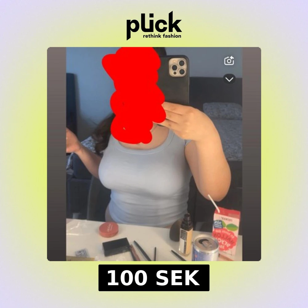 Säljer en ljusblå ribbad topp med rund halsringning och korta ärmar. Toppen har en tight passform och är tillverkad i ett mjukt och stretchigt material som sitter snyggt på kroppen. Köpte från Gina för 200 säljer för 80-100kr knappt används