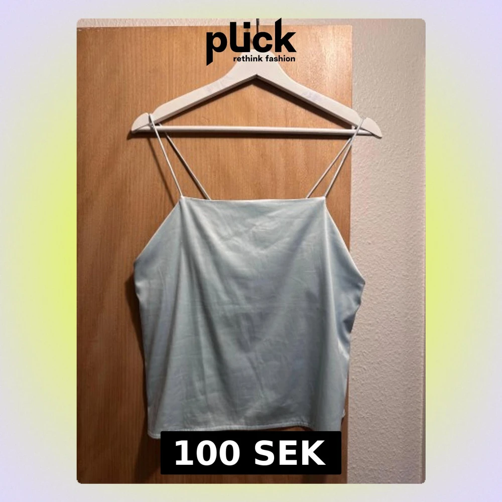 Säljer en ljusblå linnetopp från Zara i satin med tunna axelband och slät, glansig yta. Toppen har en enkel och stilren design.