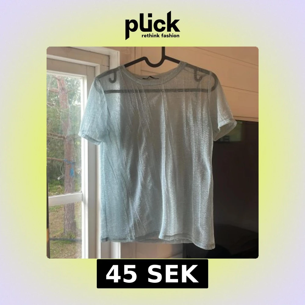Säljer en ljusblå transparent topp från Zara. Toppen har korta ärmar och är tillverkad i ett glittrigt, tunt syntetmaterial som ger en skimrande effekt. Perfekt för att styla lager på lager. 💕