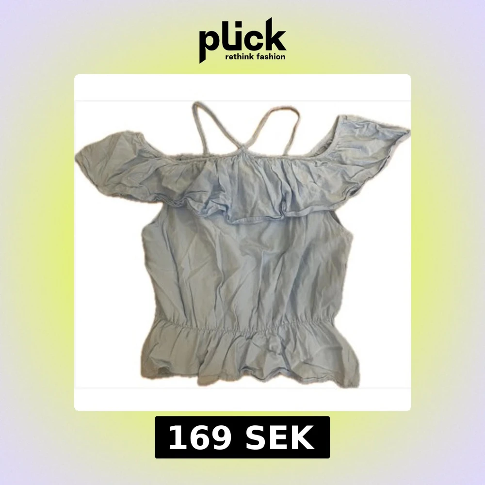 Supersöt ljusblå offshoulder topp från Little Remix med tunna axelband, volangdetaljer upptill och nertill och smock i midjan för en snygg passform. Står storlek 14 och passar XS/S.