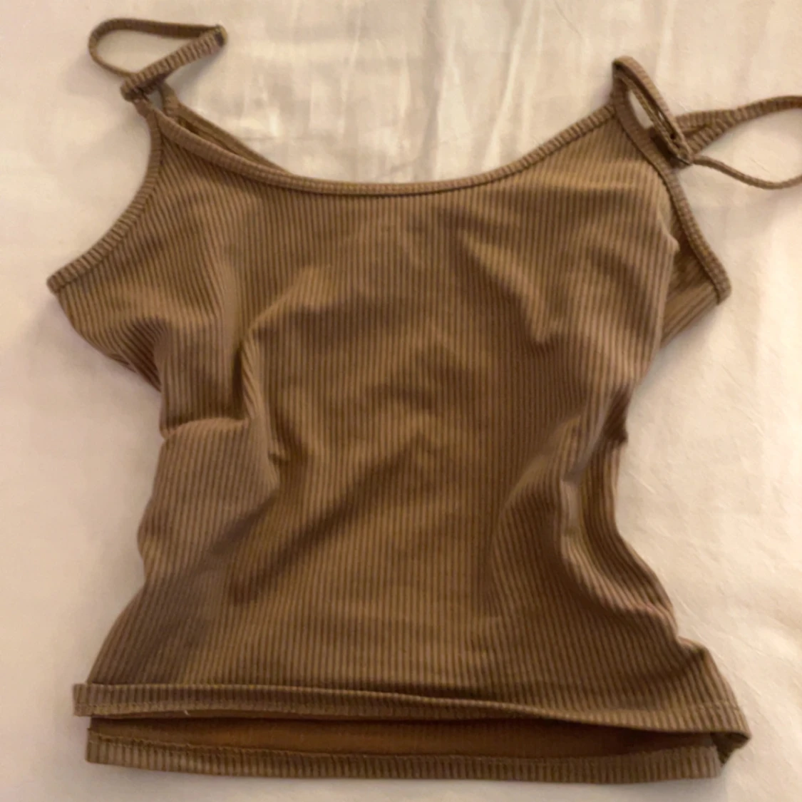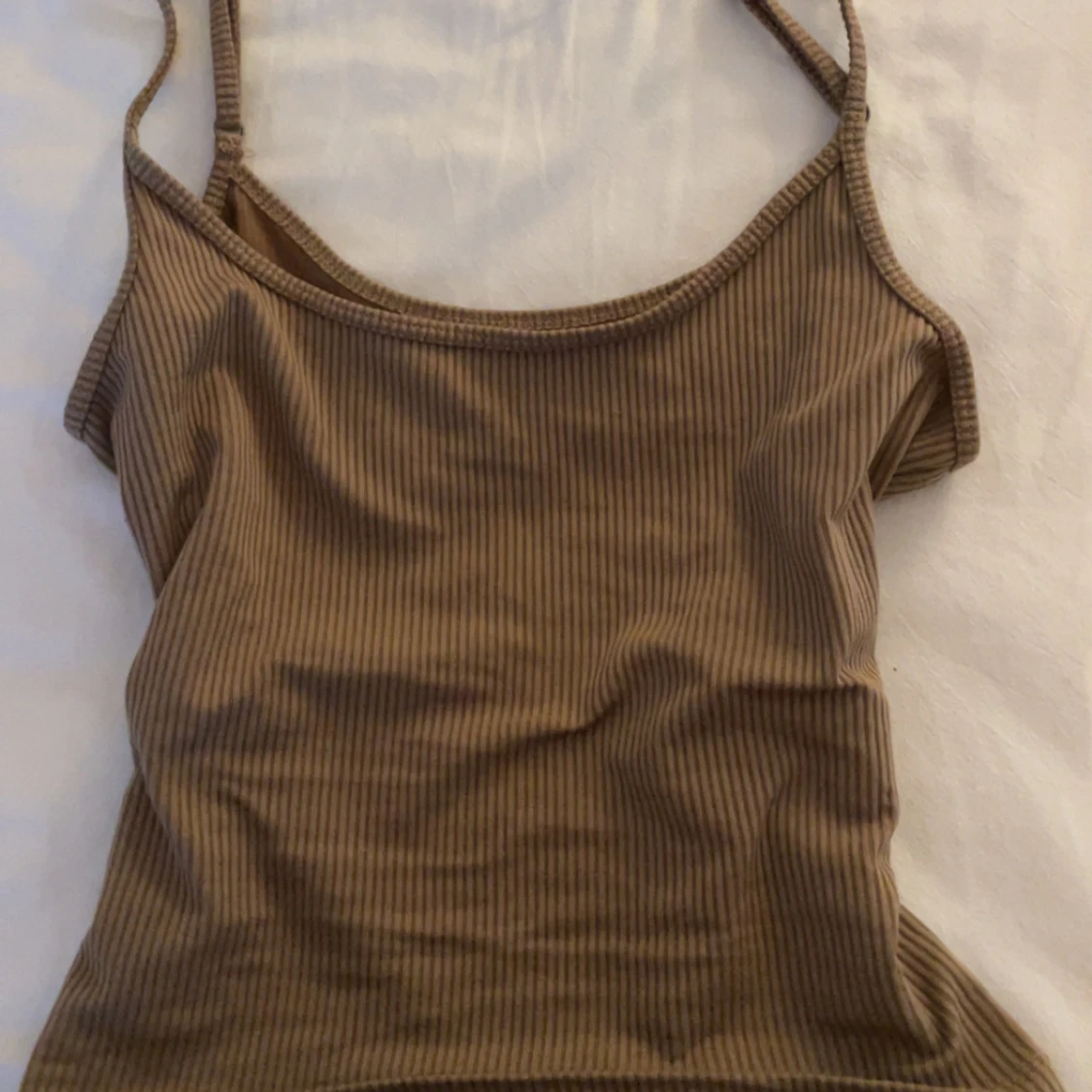 Säljer en beige ribbad linnetopp från Hollister. Toppen har smala axelband och en åtsittande passform, perfekt för varma dagar. Den är en del av deras Must-Have Collection och är tillverkad i Vietnam.