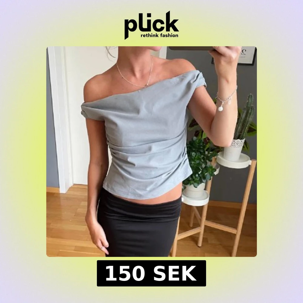Snygg ljusgrå offshoulder topp med draperad effekt och croppad passform. Toppen har en stilren och enkel design som ger en trendig look. Perfekt för dig som gillar minimalistisk stil med en twist.