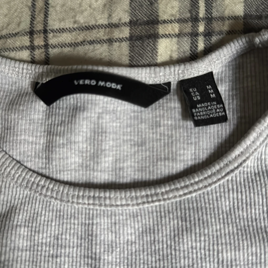 En stilren ljusgrå t-shirt från Vero Moda i ribbad bomull. Modellen är klassisk med rund halsringning och korta ärmar. Perfekt basic-plagg att matcha med allt. Snygg och enkel att bära till jeans eller kjol.