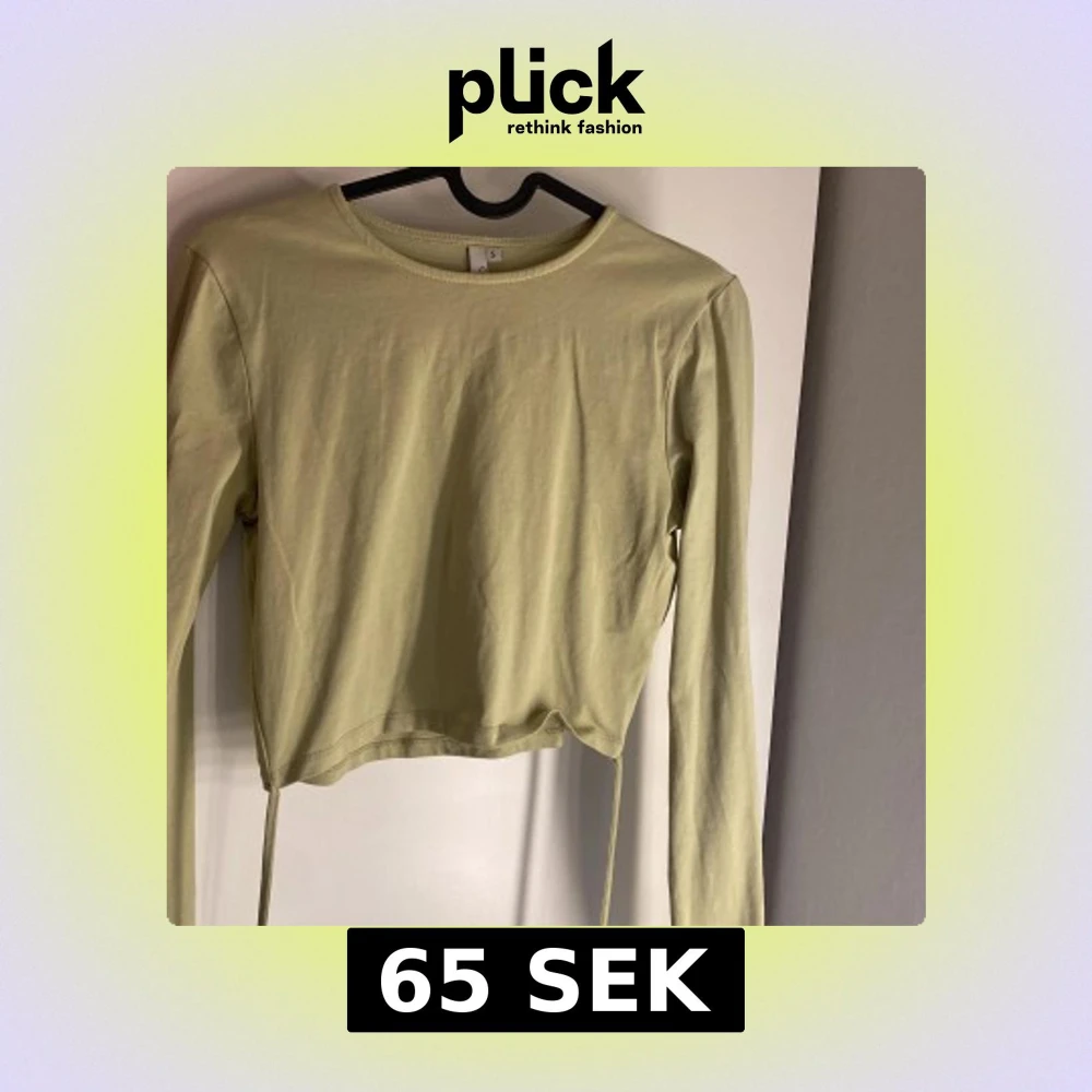 Säljer en ljusgrön croppad långärmad topp från NLY Trend. Enkel och stilren design med rund halsringning och smal passform. Knytning runt mage. Perfekt att matcha med jeans eller kjol för en trendig look.
