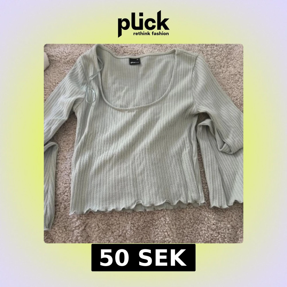Supersöt ljusgrön långärmad topp från Gina Tricot i ribbat material. Toppen har en djup, rundad urringning och vågig kant. Kan ej ha så har använts en gång. Tar frakt!