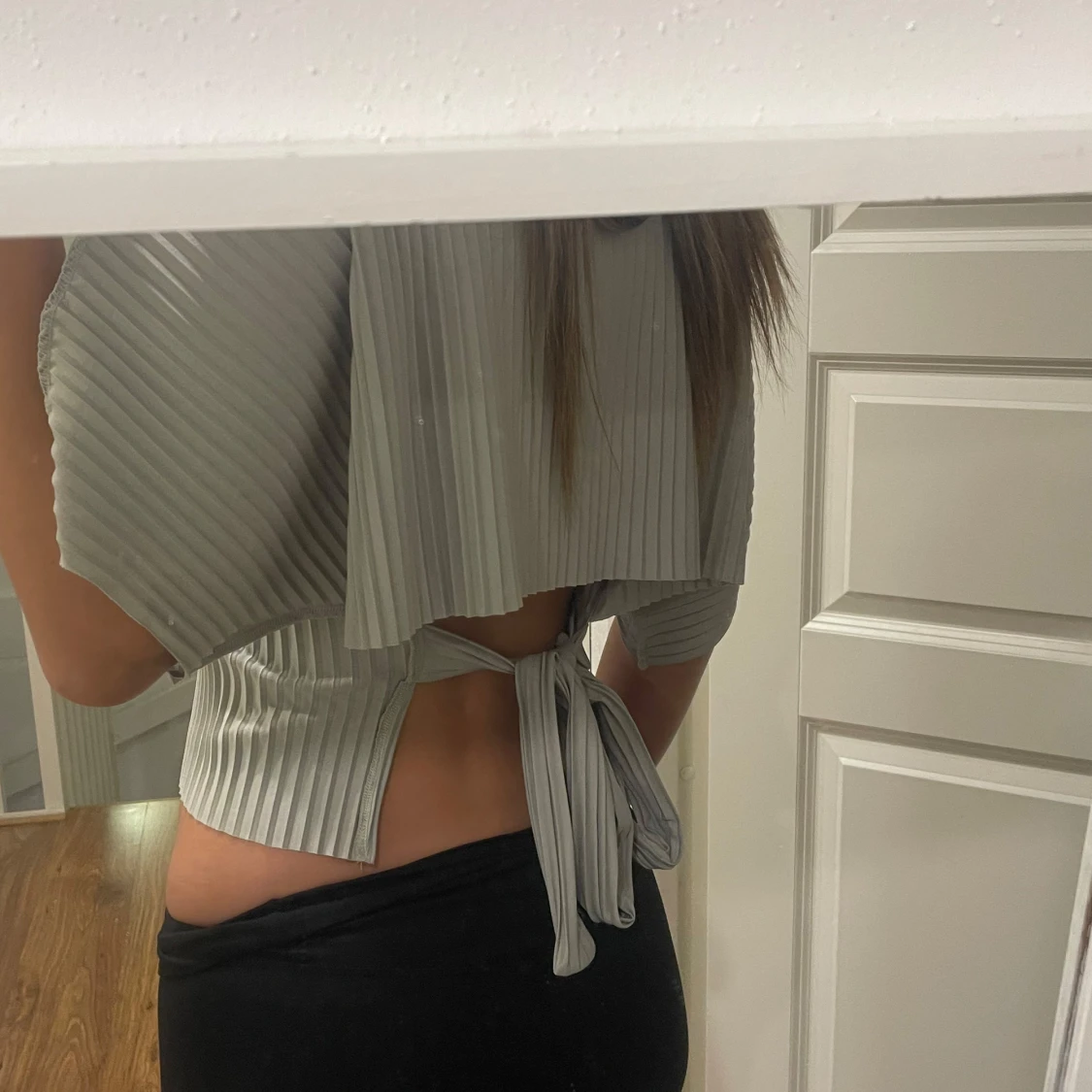 Ljusgrön ribbad topp med öppen rygg i bra skick