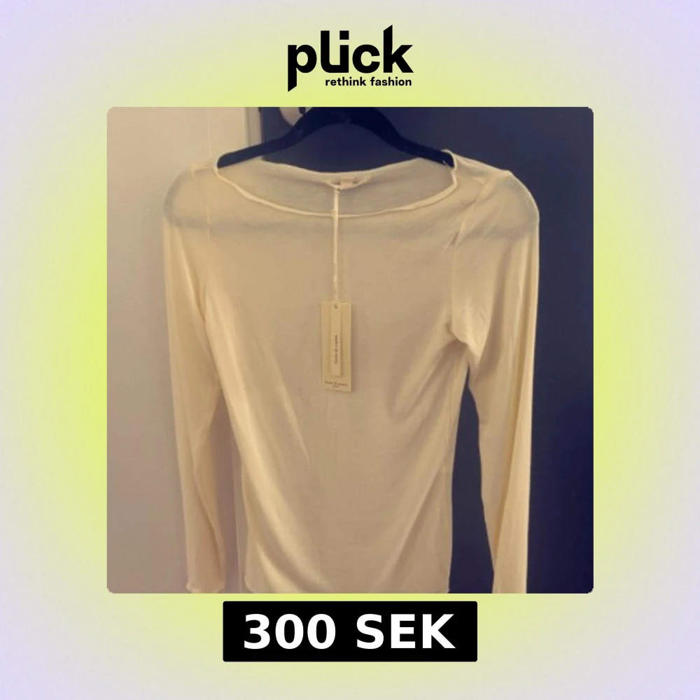 Säljer en ljusgul långärmad topp från Missäy med rund halsringning. Tunn och lätt i materialet, perfekt för lager-på-lager eller som en enkel bas i garderoben. Aldrig använd!