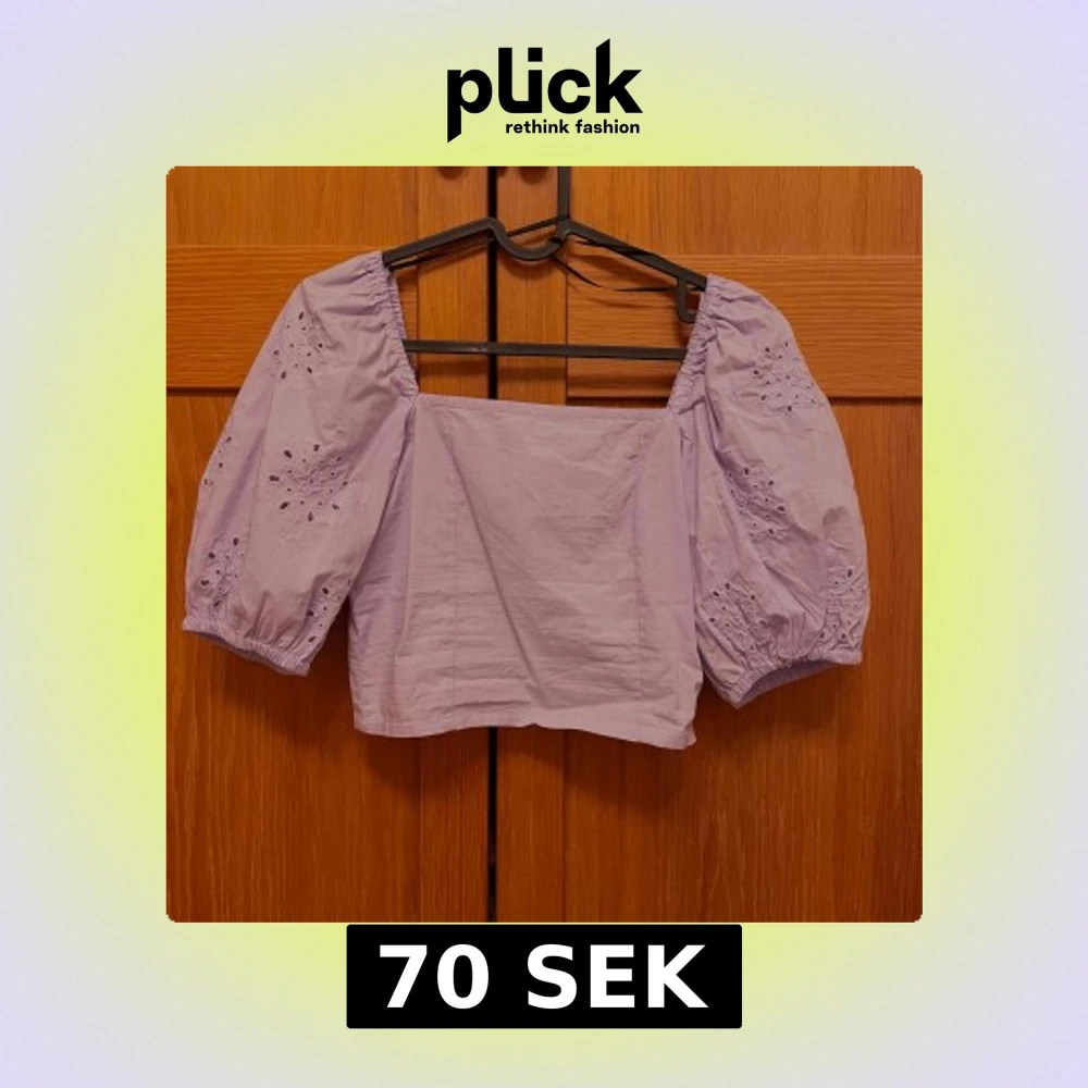 Säljer en söt ljuslila blus med puffiga trekvartsärmar och broderade detaljer. Blusen har en fyrkantig halsringning och elastiska ärmslut. Perfekt för en somrig look!