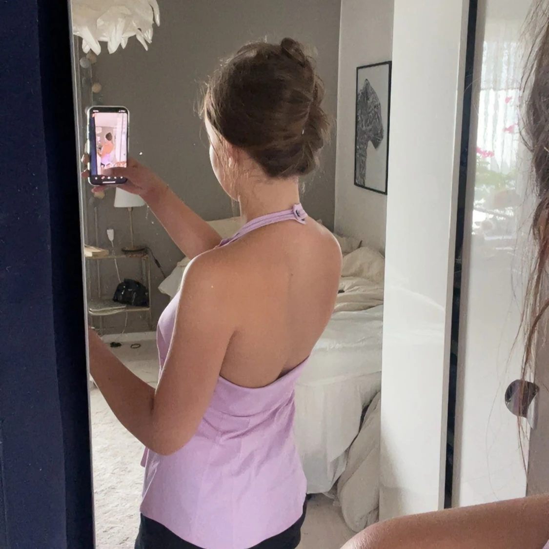 Superfin ljuslila halterneck topp från Express Design Studio. Toppen har knappar vid nacken som går att justera. Stolen S. 💜