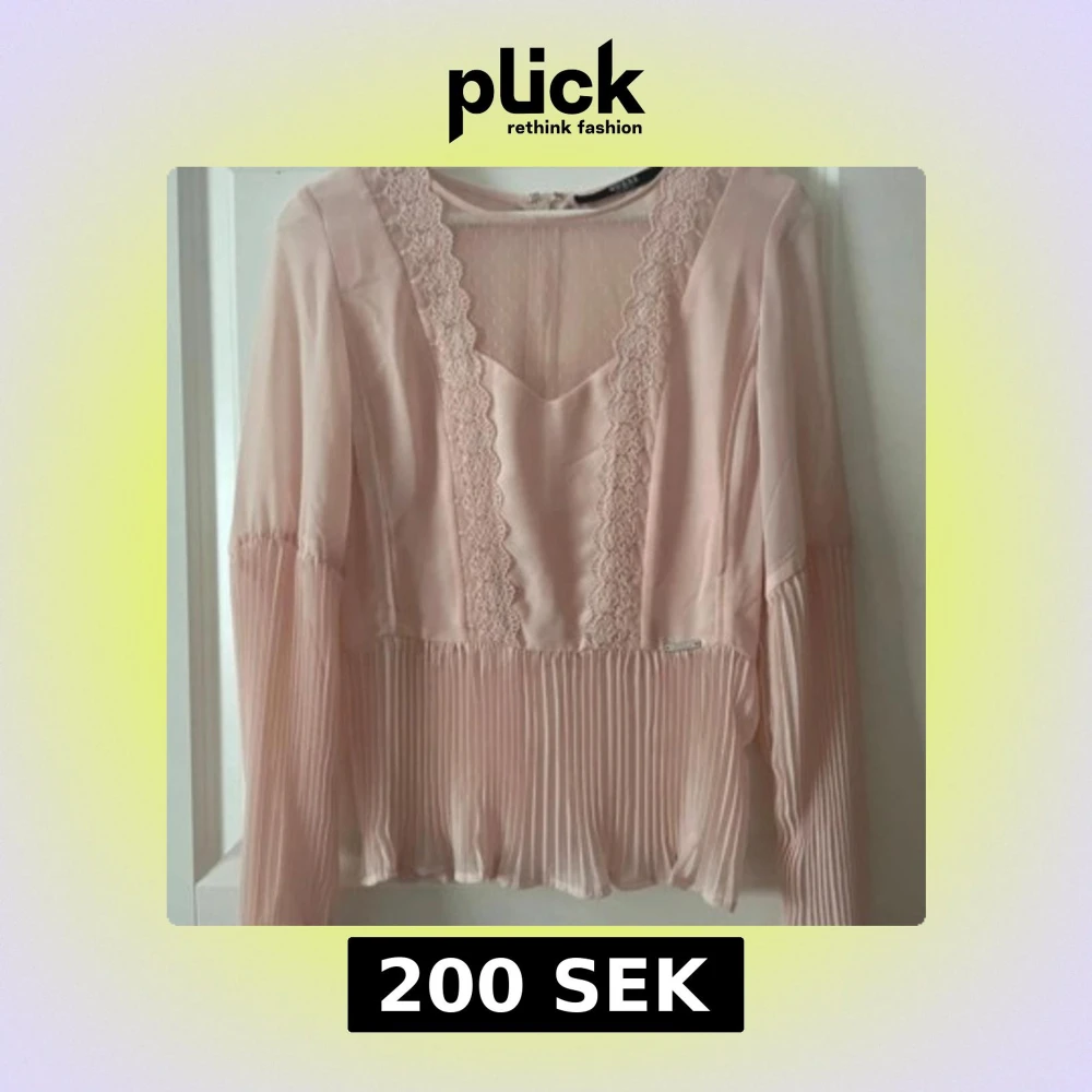 Säljer en ljusrosa blus från Guess med långa ärmar, vacker spetsdetalj längs ringningen och plisserad nederdel. Blusen har en feminin och romantisk stil med fina detaljer framtill. Aldrig använd.