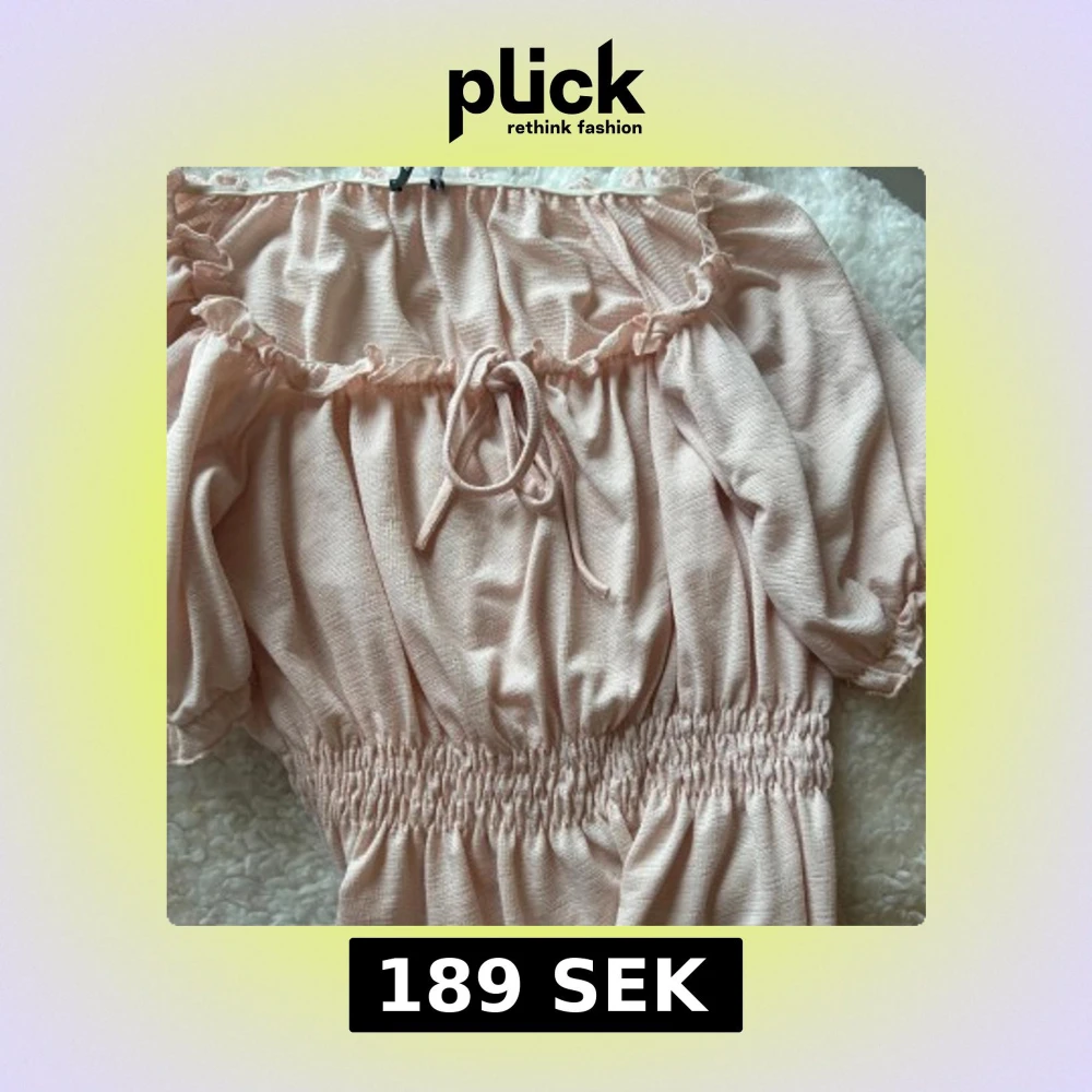 Supersöt ljusrosa blus med volangkant och knyt framtill. Smockad midja ger en snygg form och puffiga korta ärmar kan bäras både på axeln och offshoulder. Perfekt för vår och sommar, i mjukt och lätt bomullsmaterial.