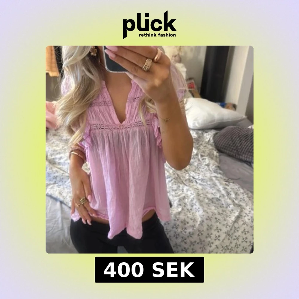 Söt ljusrosa blus med v-ringning och volangdetaljer längs ärmar och axlar. Blusen har korta ärmar och ett luftigt, löst sittande passform. Perfekt för vår och sommar. Lånade bilder💕