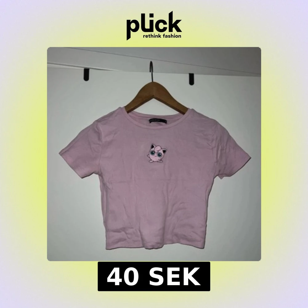Supergullig ljusrosa croppad topp/T-shirt med broderad Jigglypuff från House i Polen.